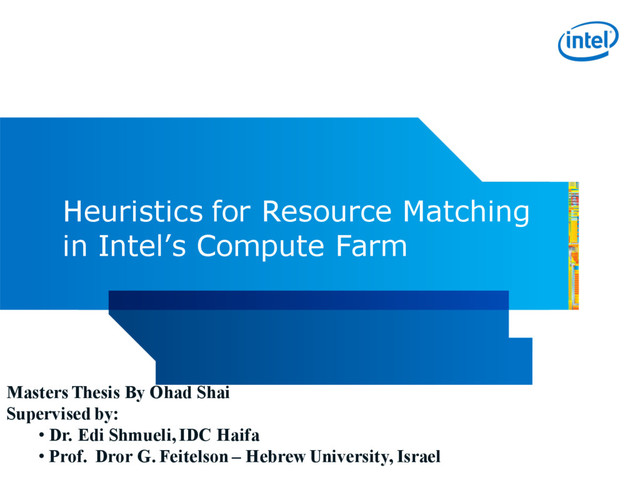 paper we investigated the problem of resource matching in Intel’s compute farm •Improvements to matching heuristics were suggested: •Heuristics focus on a single resource, either cores or memory à We implemented Mix-Fit •The nature of dynamically changing demands prevent a specific use case-tailored algorithm to be optimal for all cases à We suggest Max-Jobs meta-heuristic •Open source simulator: https://code.google.com/p/batch-simulator/