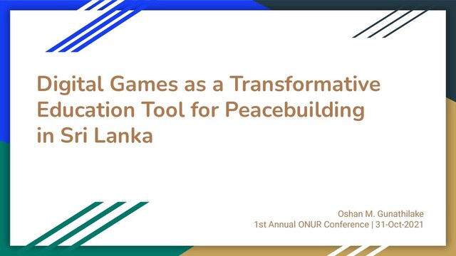 realistic, relevant, experimental and critical approach to peace education 2. It also provides more accessibility in intercultural dialogue, social emotional learning and social cohesion through collaborative play (contact group theory) 3. Digital games, coupled with proper lesson plans and educator guidance/ mentorship can create a larger impact in the transformative learning process 4. Underneath the dominance narrative of Digital Games contributing to negative social outcomes, there is a strong alternative narrative with positive public perception for educational digital games 5. More research, policy reforms and investments should be made in the area of digital games for education in local settings