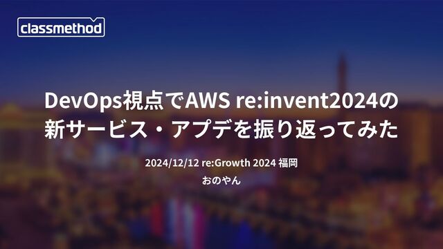DevOps視点でAWS re:invent2024の 新サービス‧アプデを振り返ってみた 2024/12/12 re:Growth 2024 福岡 おのやん