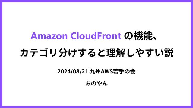 Amazon CloudFront の機能、 カテゴリ分けすると理解しやすい説 2024/08/21 九州AWS若⼿の会 おのやん