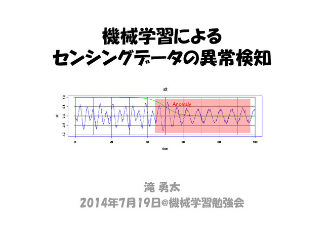g. SVR) 3. 新規データ(―, ×)を評価する(※) a. 入力が特定範囲(1月~12月, [0, 1]など)のケース 当該データ予測値と実測値とのギャップにより評価 b. 実時間における将来予測のケース データ系列に対する予測値と実測値とのギャップに より評価 ※ 回帰による異常検知は様々なパターンがありうる b × a