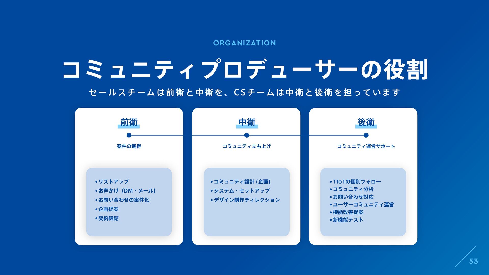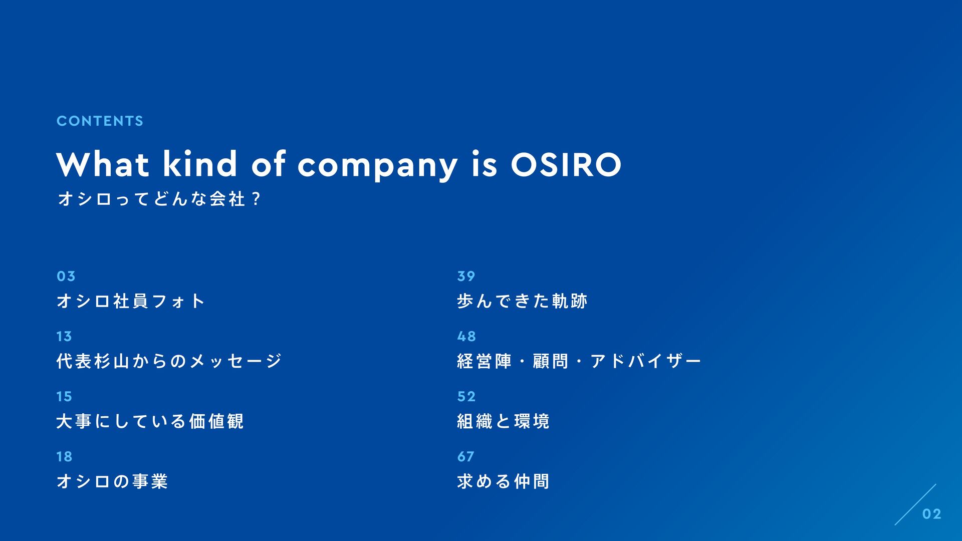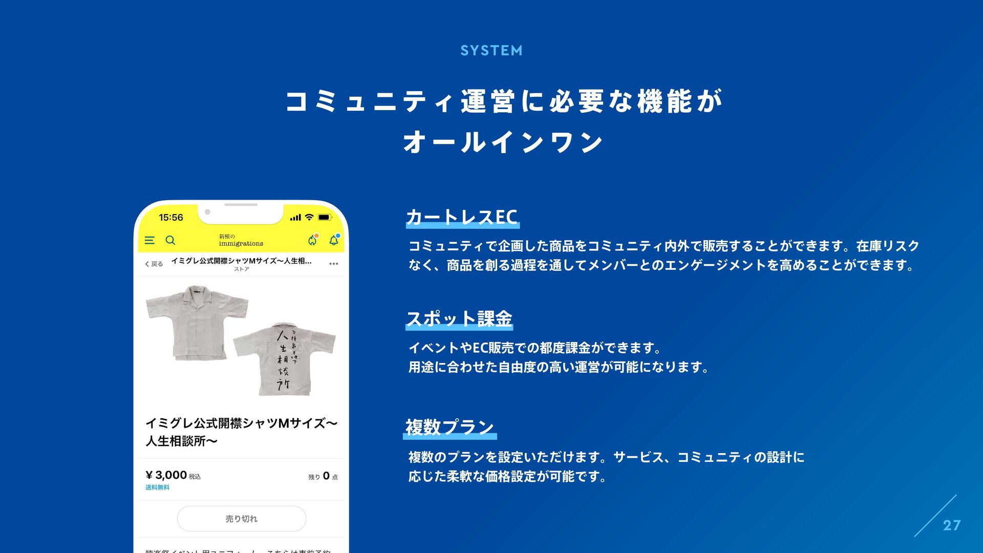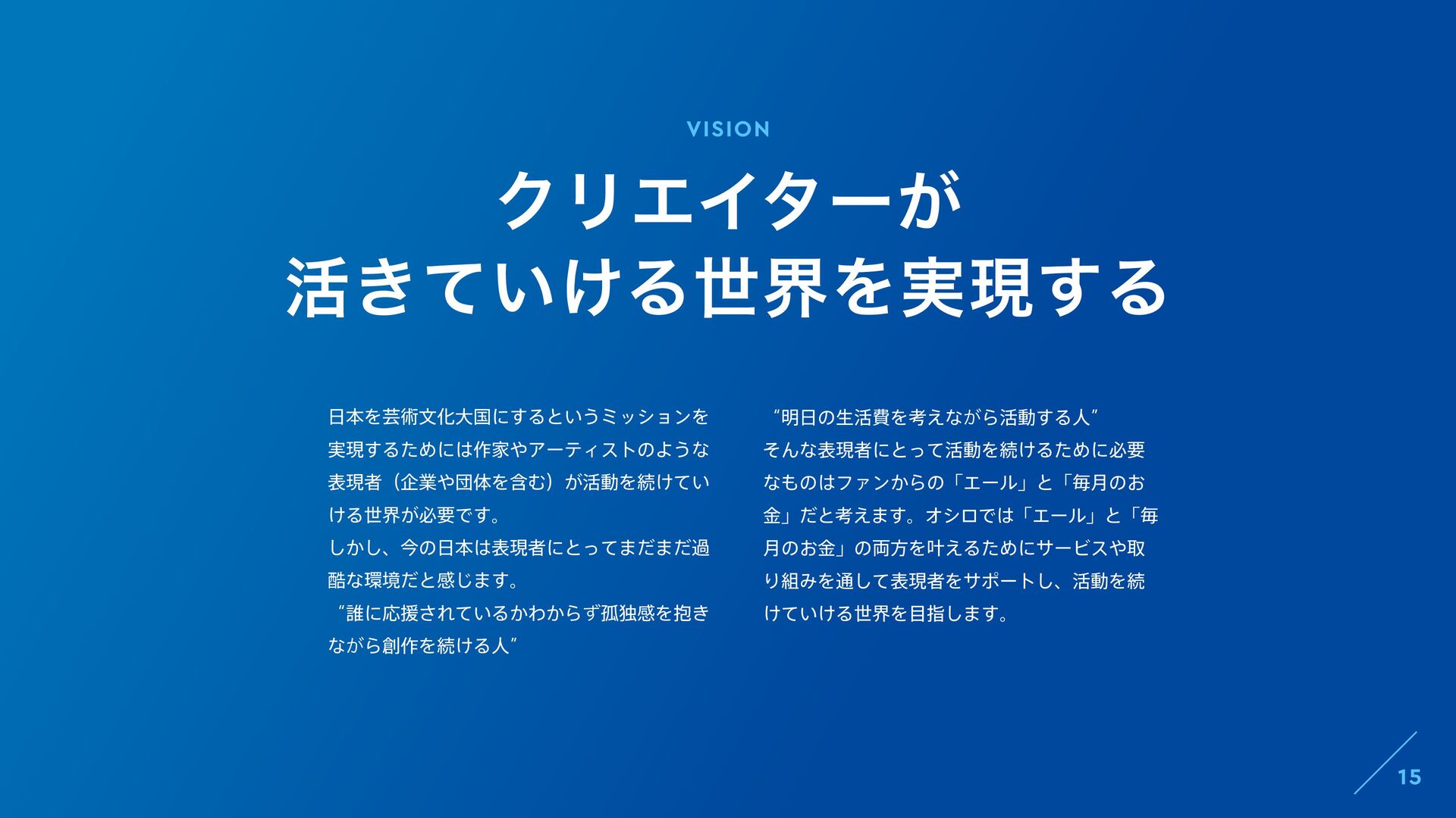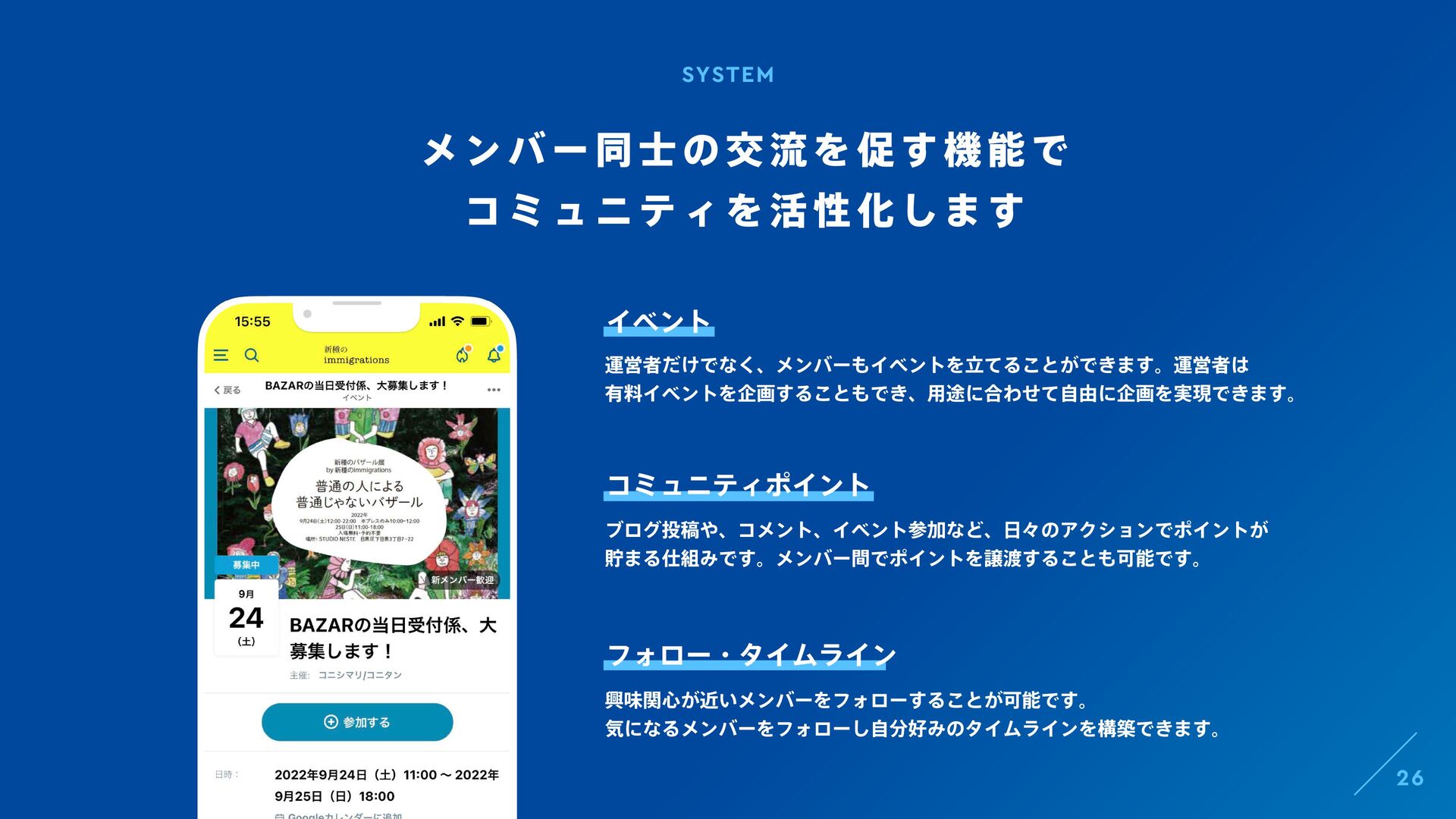 ʮ04*30ʯɺίϛϡχςΟઐ༻ͷΦϯυϓϥοτϑΥʔϜͰ͢ɻ ʮຊΛܳज़จԽେࠃʹ͢Δʯͱ͍͏ϛογϣϯΛ࣮ݱ͢ΔͨΊʹɺ࡞ՈɾΞʔςΟετɺΫ ϦΤΠςΟϒ࢈ۀͷํʑ͕࡞׆ಈΛଓ͚ΒΕΔΈΛ։ൃ͠ɺʹЌ൛ͷఏڙΛ։ ࢝͠·ͨ͠ɻ ࠷େͷڧΈʮੈք؍ͷදݱʯͱʮίϛϡχςΟͷ׆ੑԽʯͦͯ͠ʮίϛϡχςΟϚωʔδϟʔ "*ԽʯͰ͢ɻੈք؍ʹͩ͜ΘΕΔϓϥοτϑΥʔϜ্Ͱϝϯόʔಉ࢜ͷίϛϡχέʔγϣϯ͕ ׆ੑԽ͢Δ͜ͱΛಘҙͱ͍ͯ͠·͢ɻ ݱࡏݸਓΫϦΤΠλʔͷΈͳΒͣϒϥϯυɾاۀ͚ʹɺίϛϡχςΟ͕׆ੑԽ͢Δ͜ͱΛ తͱͯ͠ɺձһཧɺֹ݄ɾεϙοτ՝ۚɺίϯςϯπ৴ɺάϧʔϓɺνϟοτɺϙΠϯ τɺΠϕϯτɺ͞ΒʹΧʔτϨε&$·ͰɺίϛϡχςΟӡӦʹඞཁͳશͯͷػೳ͕Ұͭʹ ूͨ͠γεςϜɾαʔϏεΛ։ൃɾఏڙ͓ͯ͠Γ·͢ɻ ͜͏ͨ͠ػೳΛ௨ͯ͡Θͨͨͪ͠ʮ04*30ʯɺϒϥϯυɾاۀྔͷߴ͍ίΞϑΝϯͷ Έ͕ू͏ʮϑΝϯΛͯͳ͢ʯΛఏڙ͠·͢ɻ SUPPORT ίΞϑΝϯͷຬ͕ ͞Βʹ্͕Δ ίΞϑΝϯ͕ ৽ͨͳϑΝϯΛݺͿ ίΞϑΝϯ͕ϏδωεΛ ظతʹࢧ͑Δ SATISFACTION MOUTH TO MOUTH Copyright © OSIRO,Ltd. All Rights Reserved. Copyright © OSIRO,Ltd. All Rights Reserved.