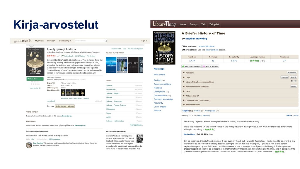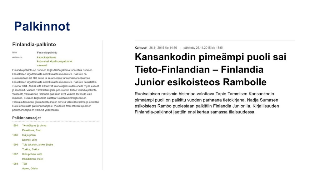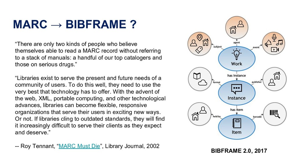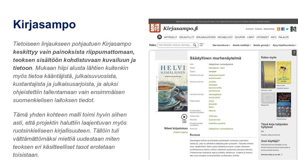 Tässä Kuvailun tiedotuspäivillä vuonna 2018 pitämässäni esityksessä kerron siitä, miten linkitetty data, BIBFRAME-tietomalli ja teoskeskeinen kuvailu vaikuttavat kuvailuun ja miten niitä on tähän mennessä sovellettu ja hyödynnetty maailmalla ja Suomessa.