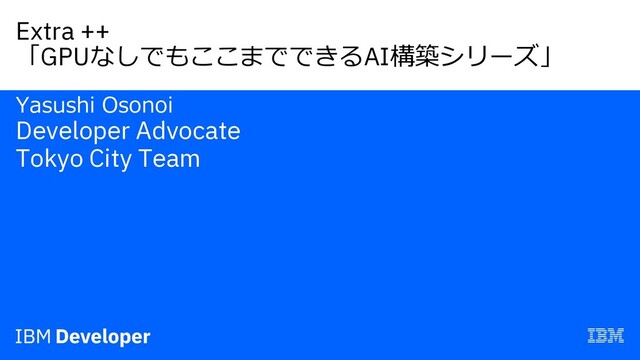 Extra ++ 「GPUなしでもここまでできるAI構築シリーズ」 Yasushi Osonoi Developer Advocate Tokyo City Team