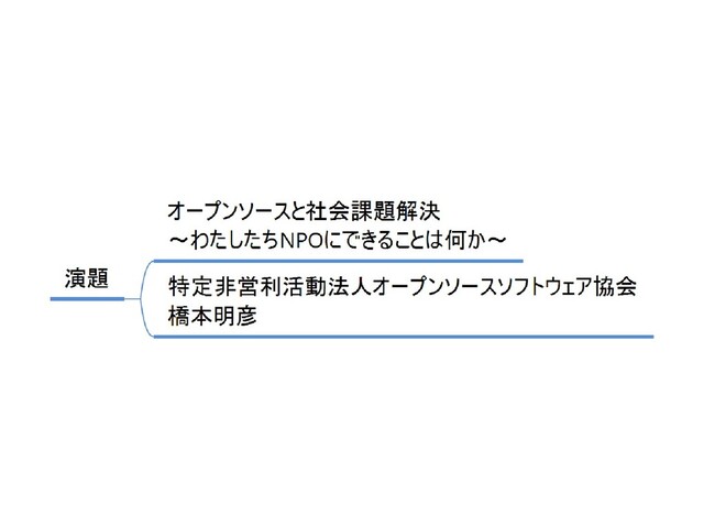 このような情勢をふまえると、私たちNPOは従前からの社会貢献活動にとどまらず、社会課題解決という視点で、活動の方向を再定義すべき段階が近づいているのかも知れません。そこで、オープンソースが社会課題解決にどのように結びつくのか、まずはそこから、考えてみたいと思います。