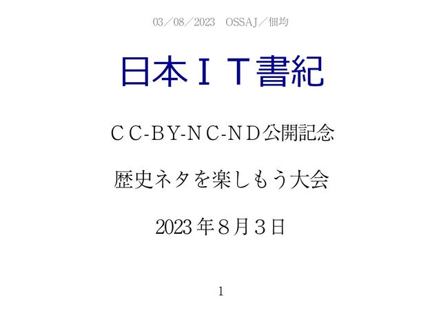 日本IT書紀CC-BY-NC-ND公開記念 歴史ネタを楽しもう大会