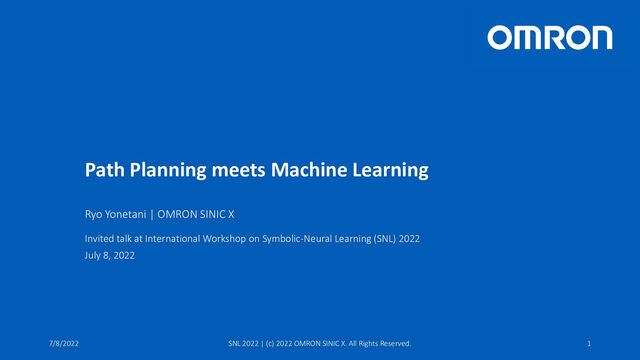 X Invited talk at International Workshop on Symbolic-Neural Learning (SNL) 2022 July 8, 2022 7/8/2022 SNL 2022 | (c) 2022 OMRON SINIC X. All Rights Reserved. 1
