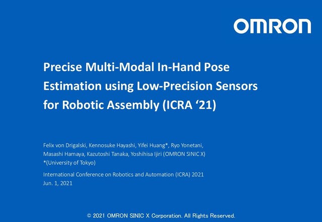 In-Hand Pose Estimation Uncertain pose after grasping High confidence Touch tip etc. Task execution Touch side Discrete actions to reduce uncertainty Interact with environment to gain information Look