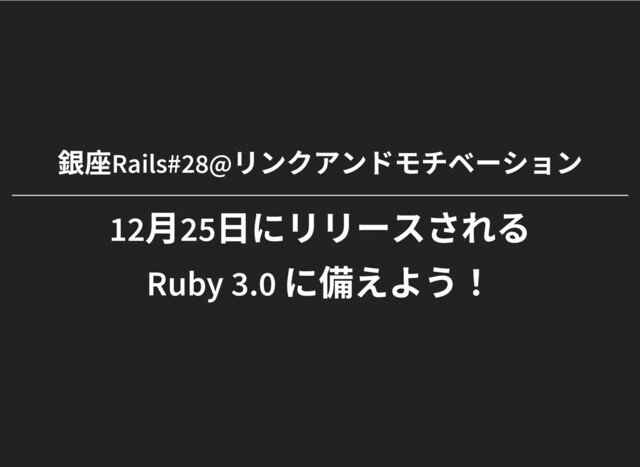 private public protected の引数の受け取り⽅と attr_reader attr_writer att 戻り値が変わります private などに配列を渡すとその配列の要素に対して適⽤されます attr_reader などの戻り値は定義されたメソッド名のシンボルが配列 てきます ⼀応⾮互換になるのでちょっと注意 で、今⽇この機能のマージされたんですがその後に 現在は Revert されています Ruby 3.0 でどうなるのかはまだ未定… 参照: CI がランダムでコ いう報告があり https://github.com/ruby/ruby/commit/982443e6e373f5a3ac22ee495909 [Feature #17314] Provide a way to declare visibility of attributes defined methods in a single expression