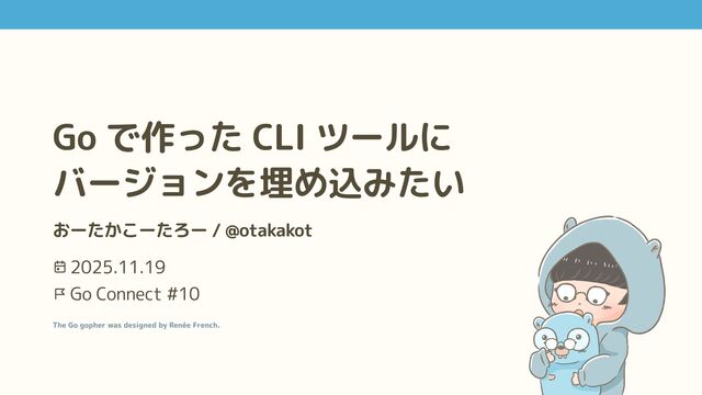 CLI ツールに バージョンを埋め込みたい おーたかこーたろー / @otakakot 2025.11.19 Go Connect #10