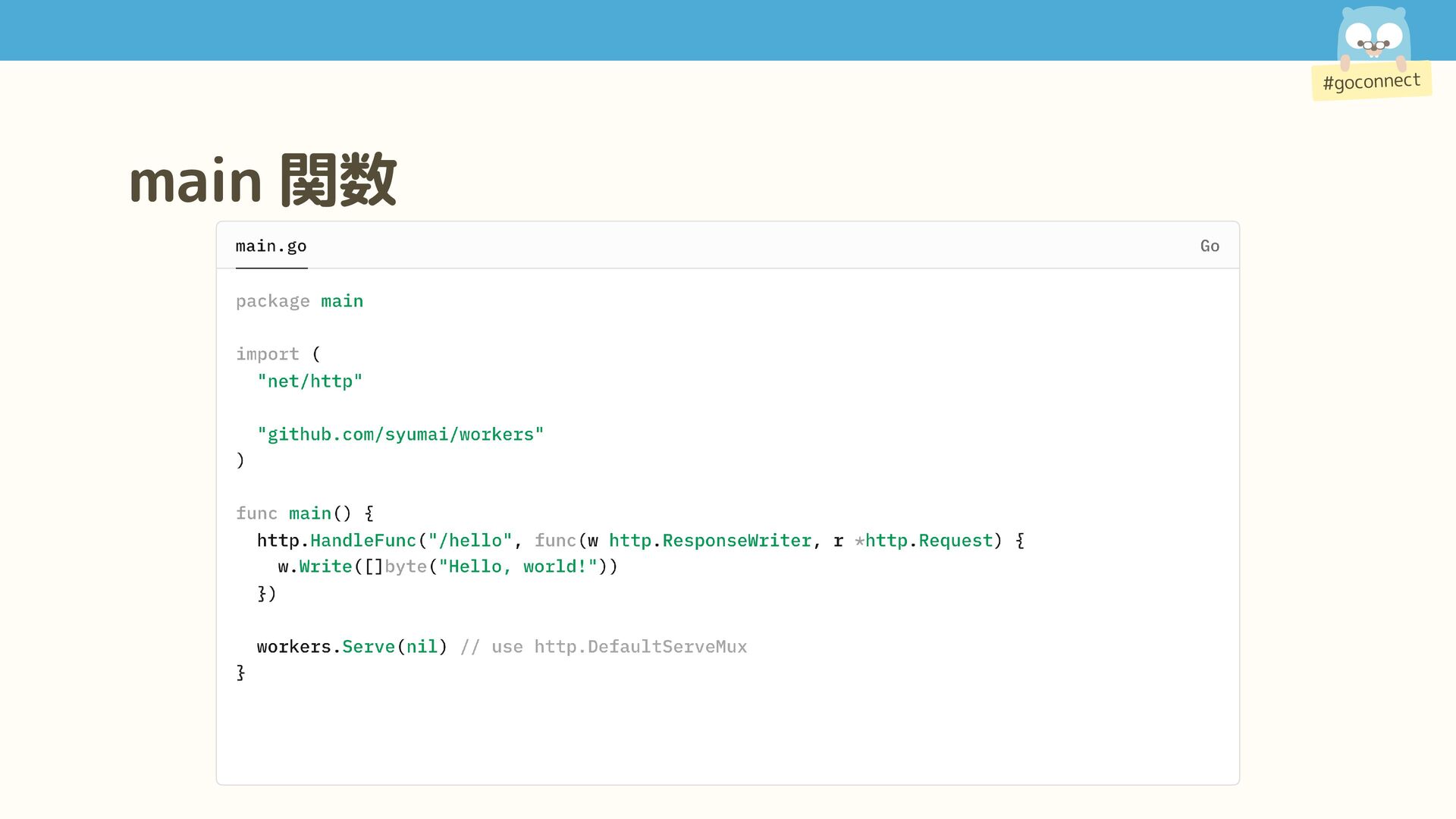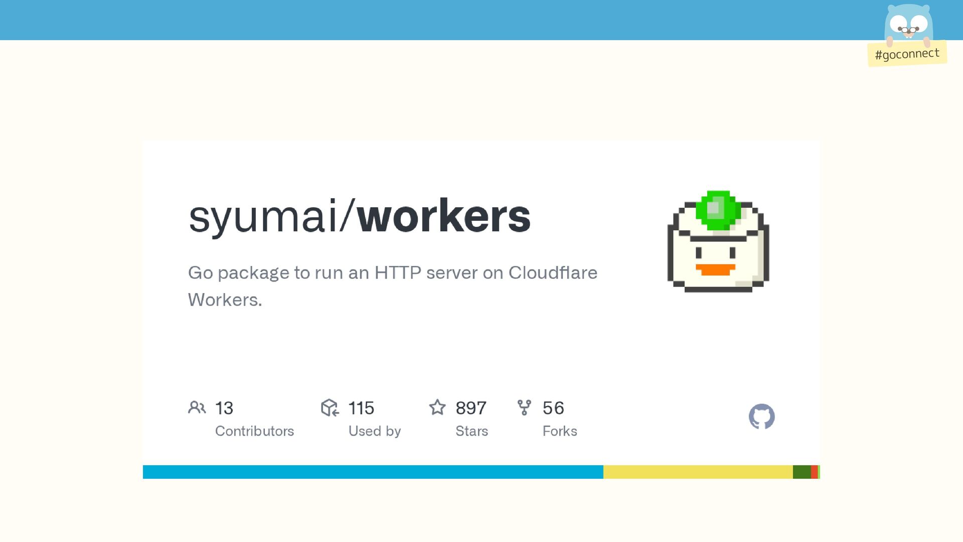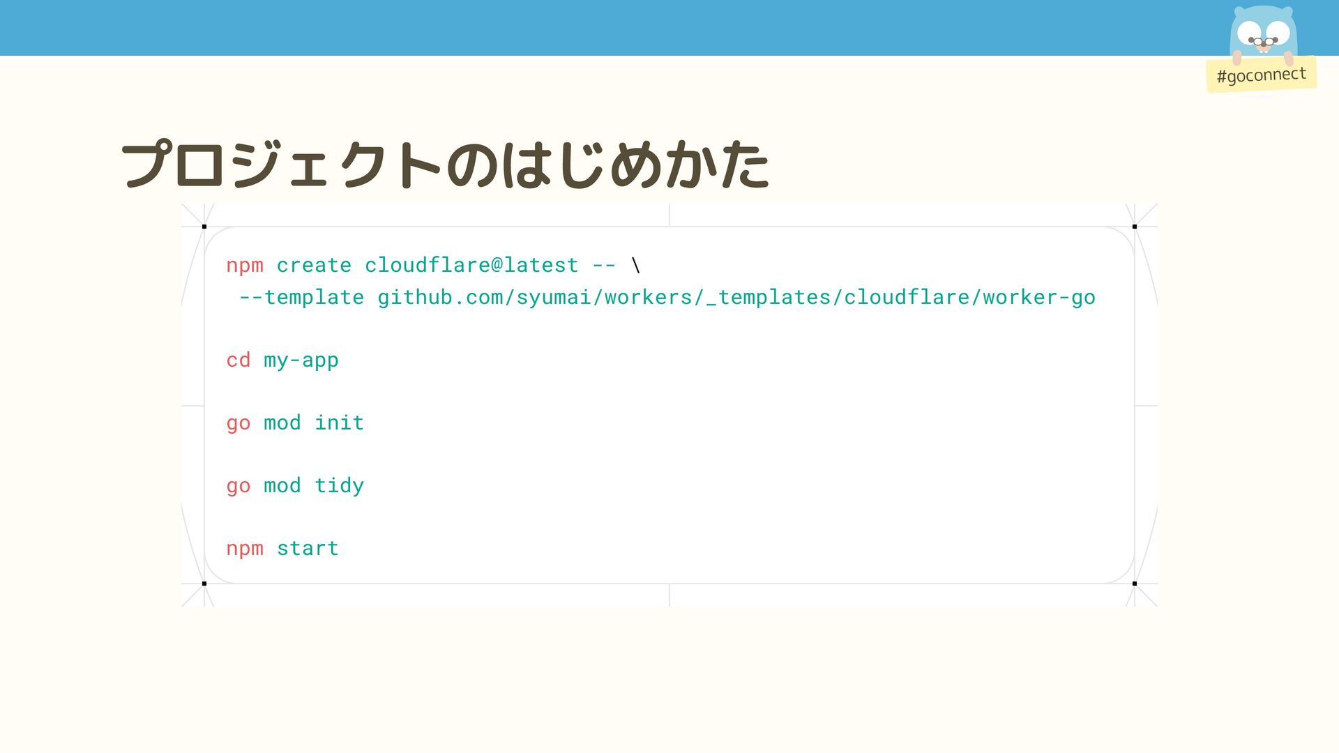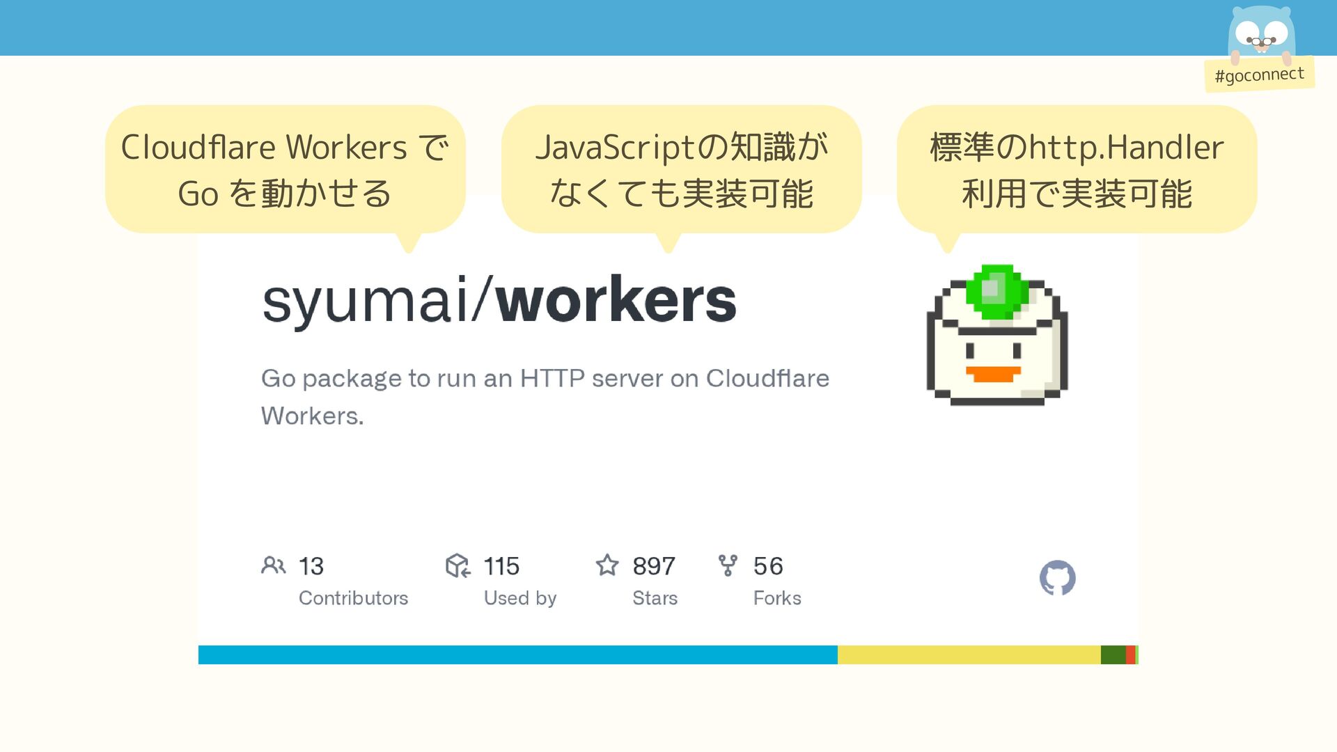 #goconnect Cloudflare Workers で Go を動かせる 標準のhttp.Handler 利用で実装可能 JavaScriptの知識が なくても実装可能