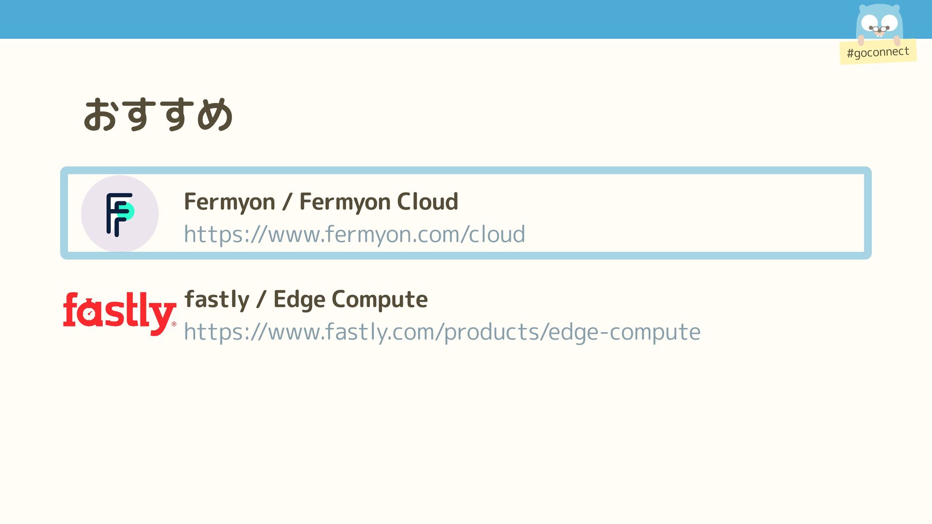 #goconnect おすすめ Fermyon / Fermyon Cloud fastly / Edge Compute