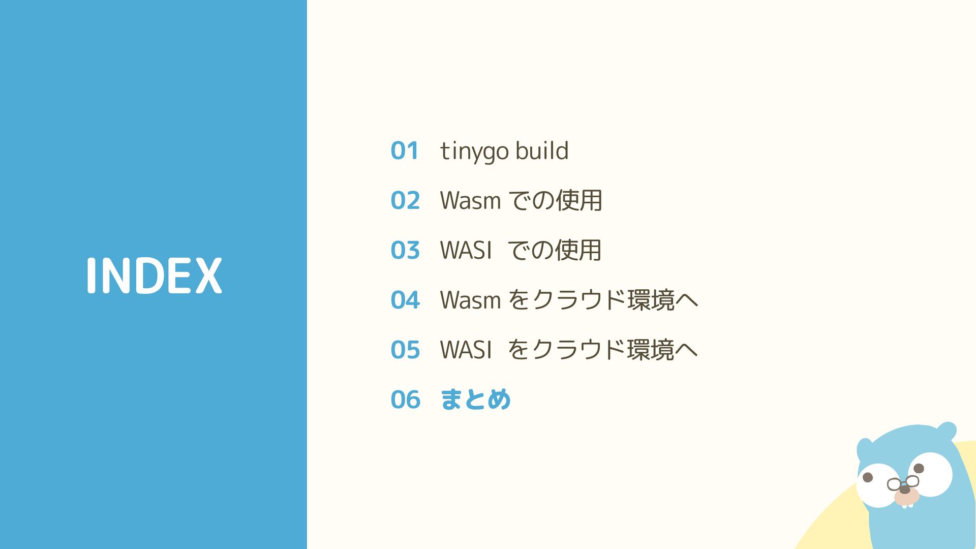 INDEX 01 tinygo build 02 Wasm での使用 03 WASI での使用
