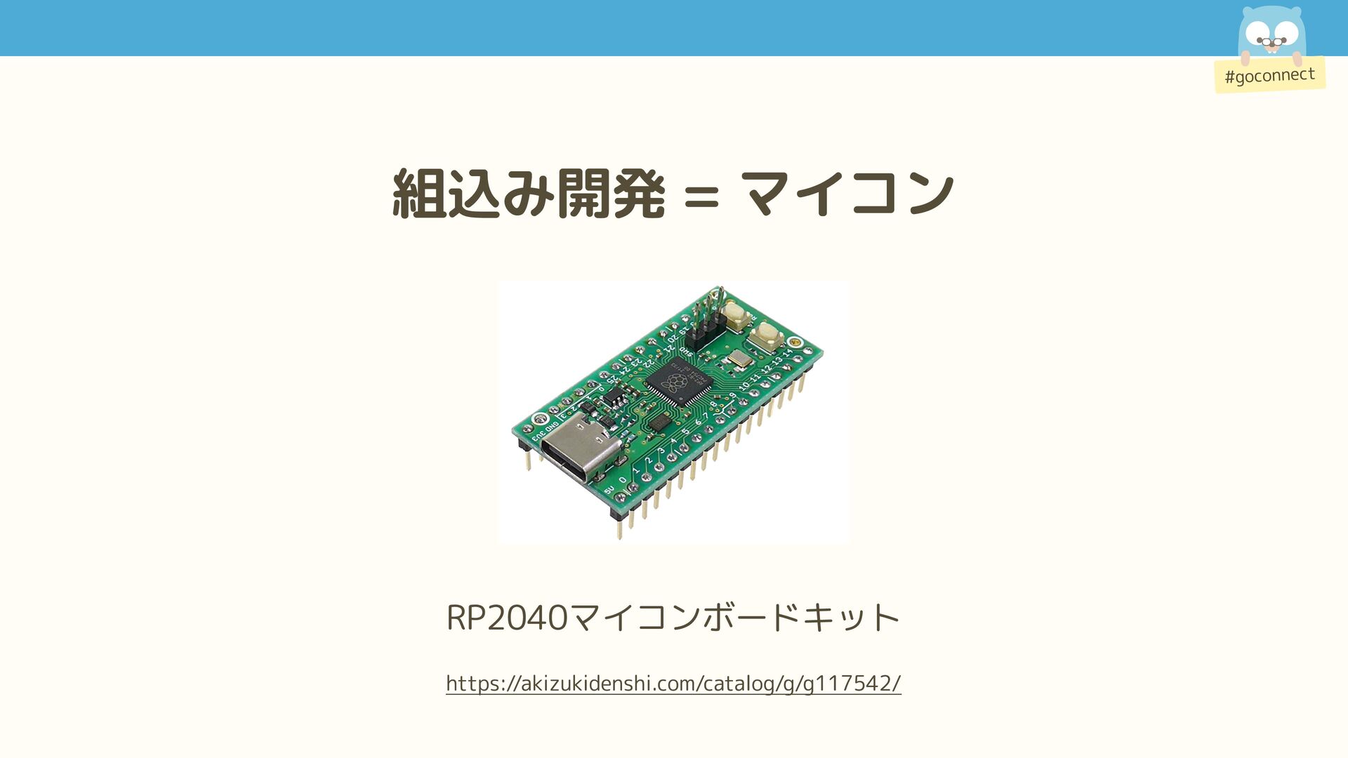 #goconnect 組込み開発 = マイコン RP2040マイコンボードキット https://akizukidenshi.com/catalog/g/g117542/