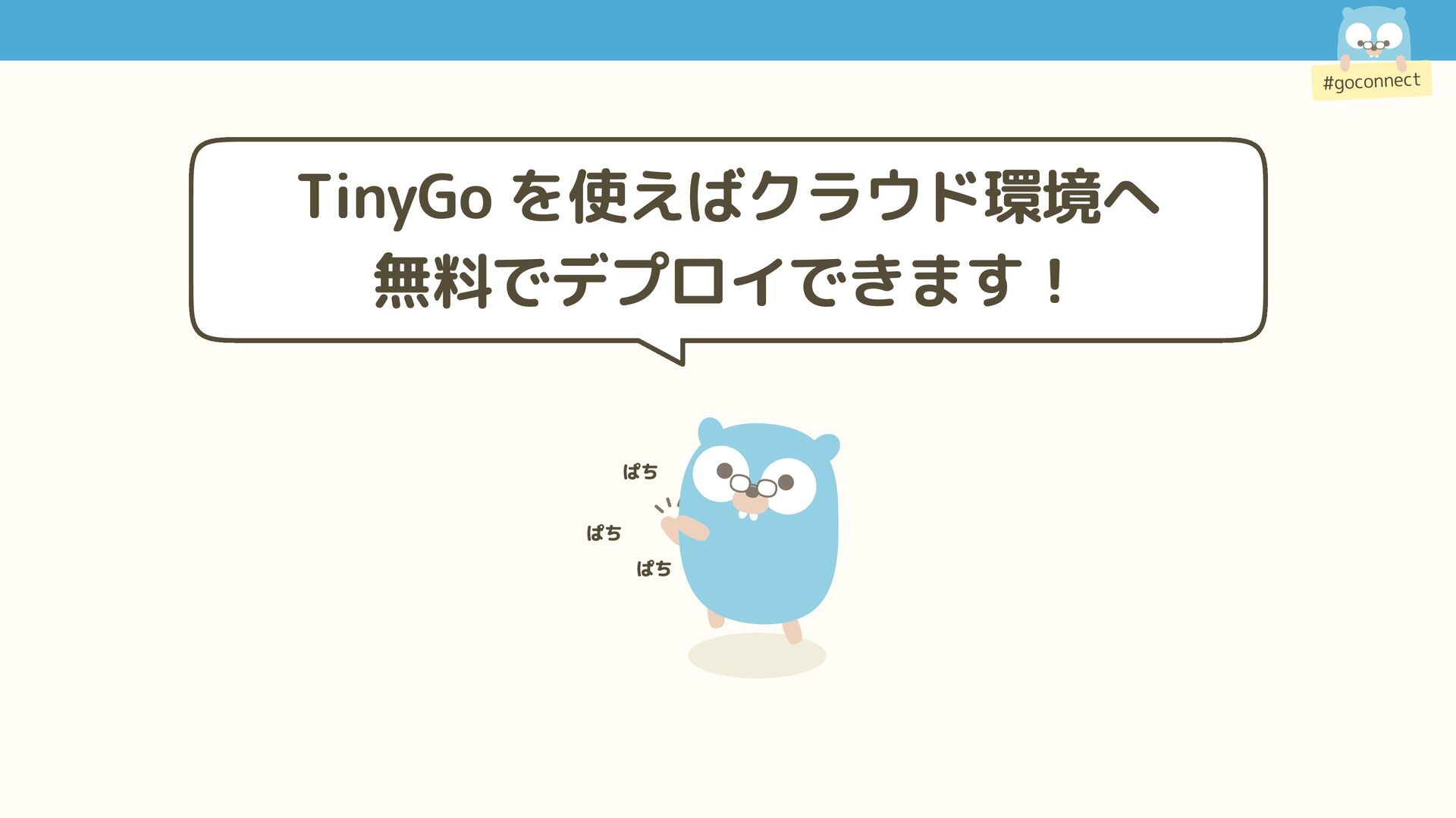 #goconnect TinyGo を使えばクラウド環境へ 無料でデプロイできます! ぱち ぱち ぱち