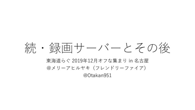 続・録画サーバーとその後 東海道らぐ 2019年12月オフな集まり in 名古屋 @メリーアヒルヤキ(フレンドリーファイア) @Otakan951