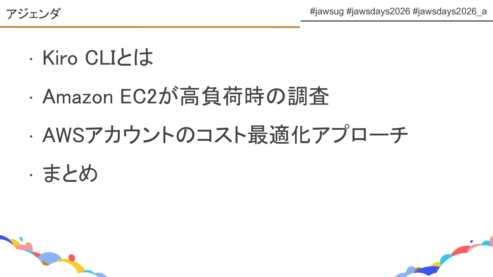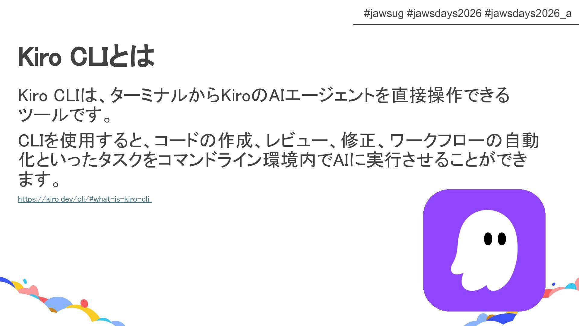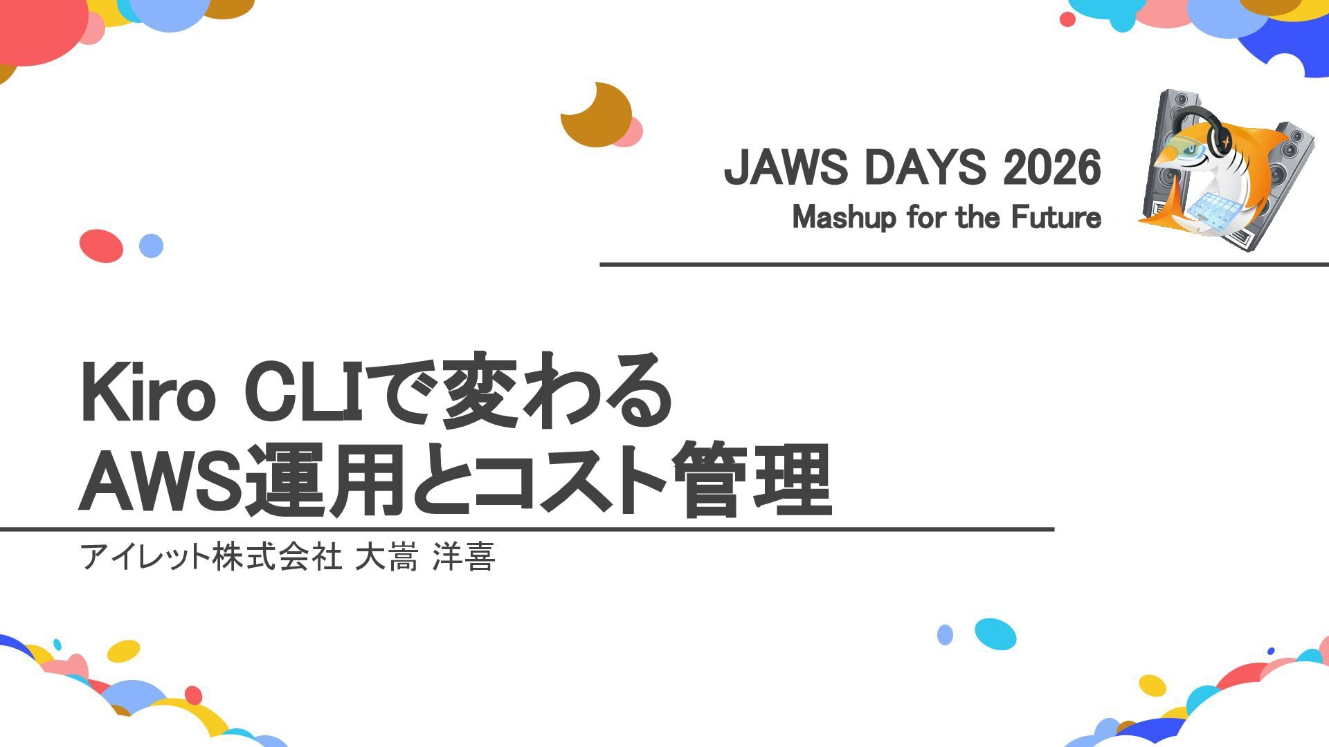 JAWS DAYS 2026 ランチタイムLT トラックE 「Kiro CLIで変わるAWS運用とコスト管理」 https://fortee.jp/jawsdays-2026/proposal/b4f86a49-2275-4bba-a7ec-87b5e91b6033