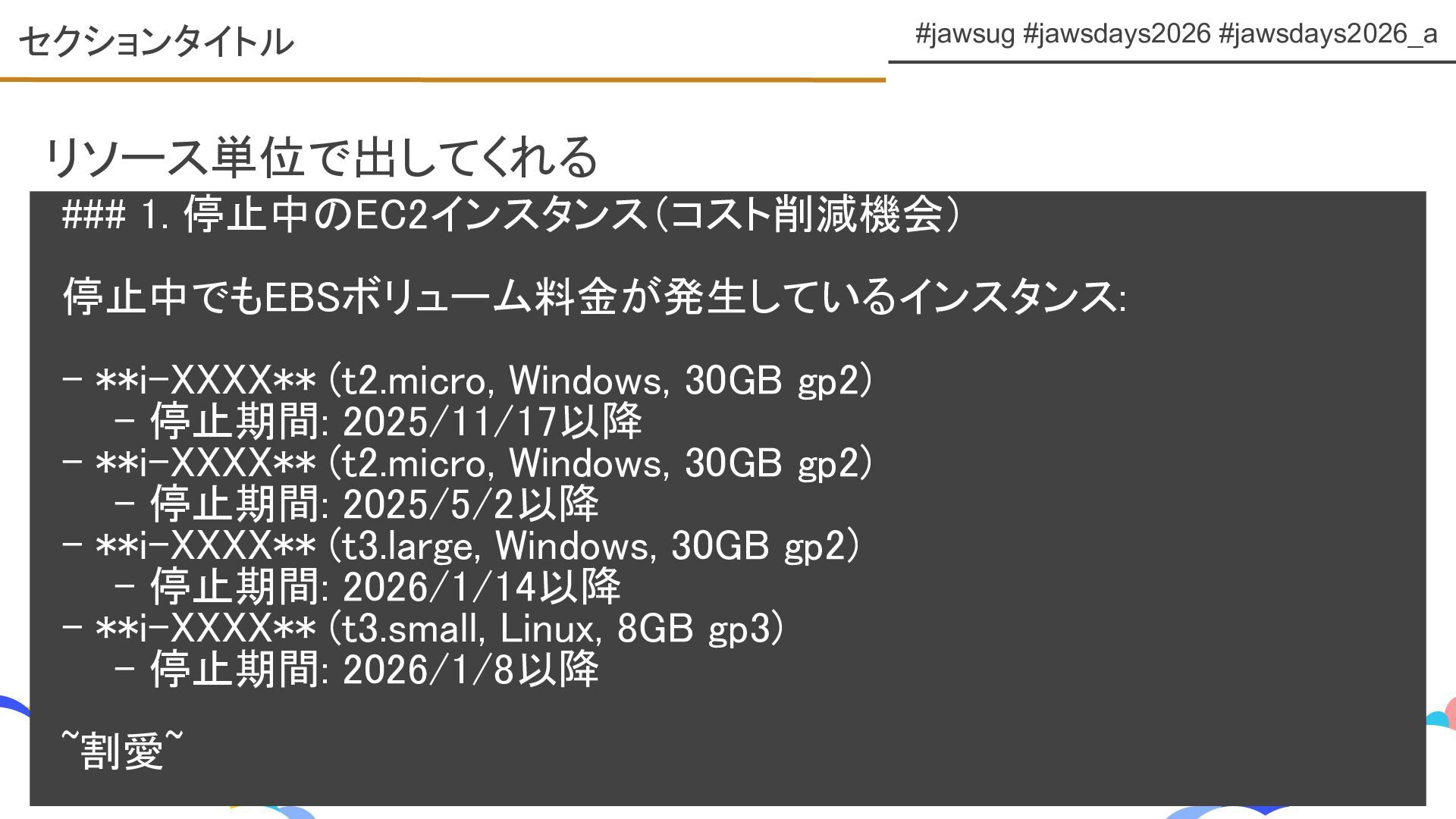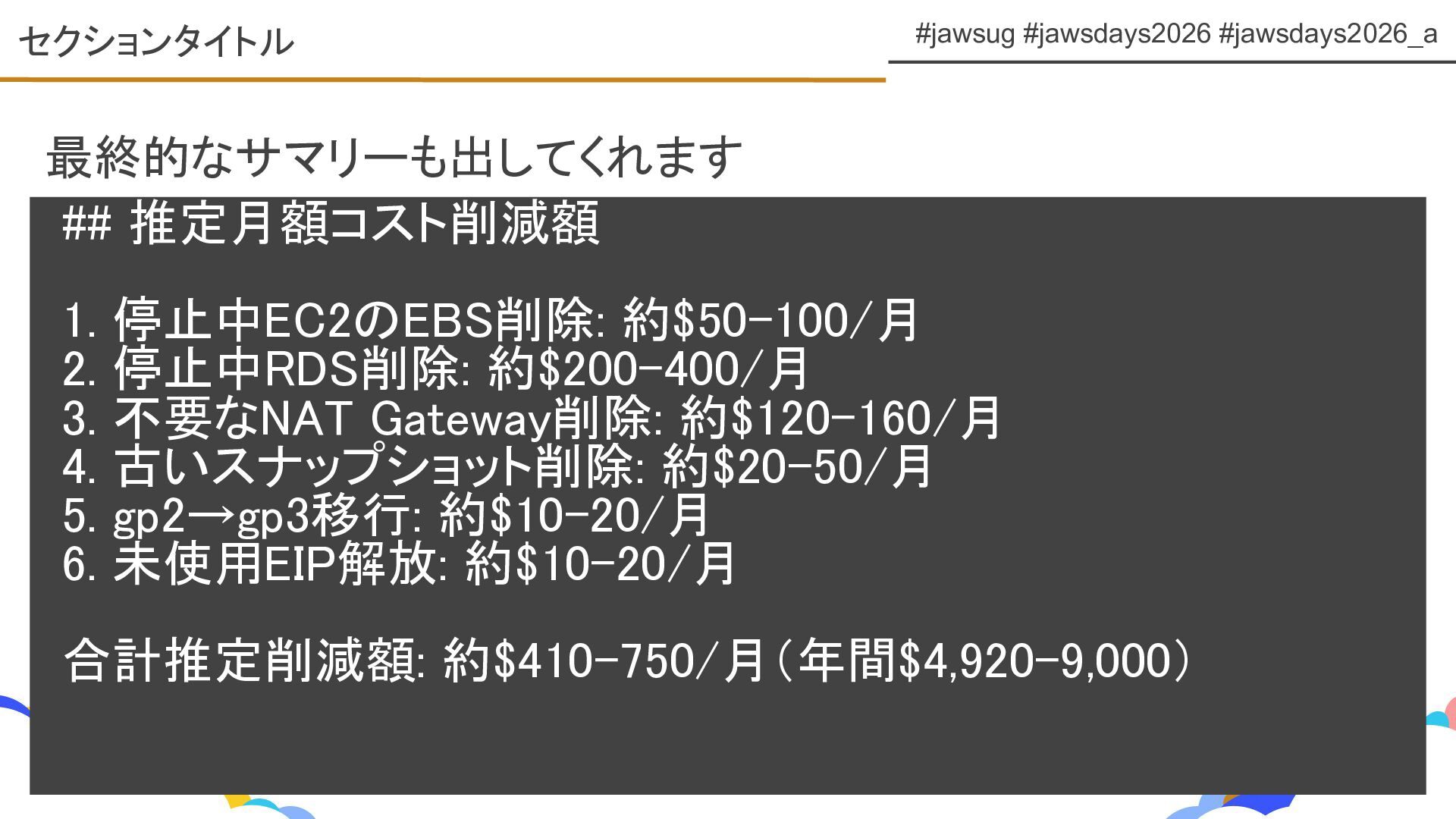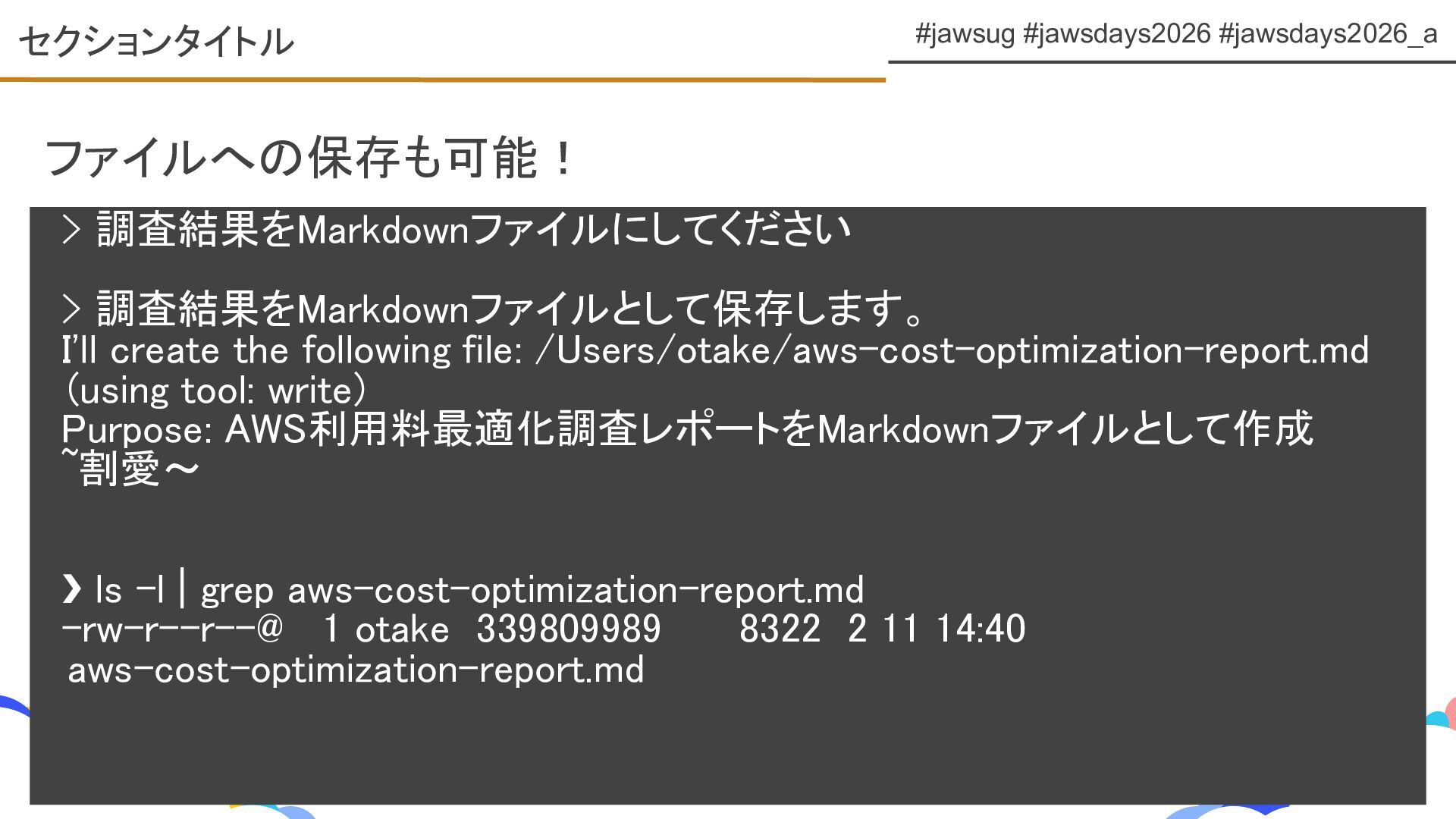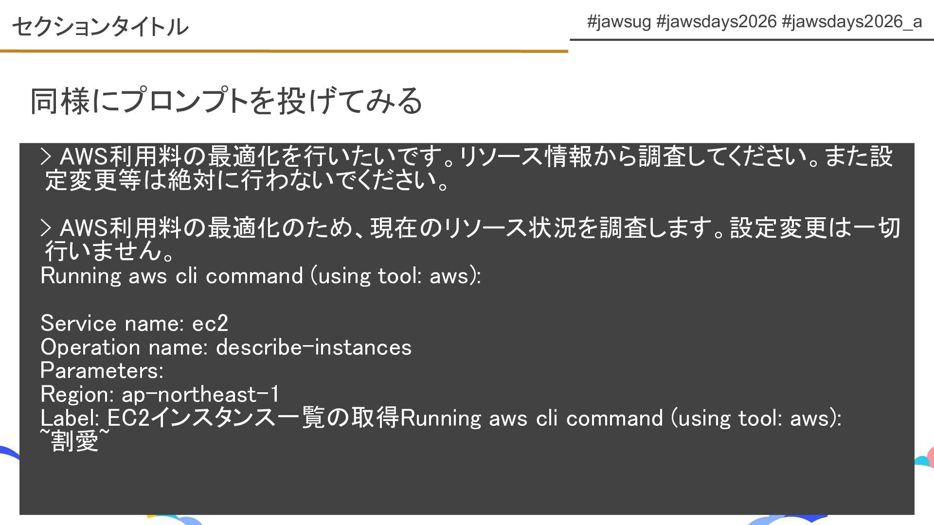 JAWS DAYS 2026 ランチタイムLT トラックE 「Kiro CLIで変わるAWS運用とコスト管理」 https://fortee.jp/jawsdays-2026/proposal/b4f86a49-2275-4bba-a7ec-87b5e91b6033