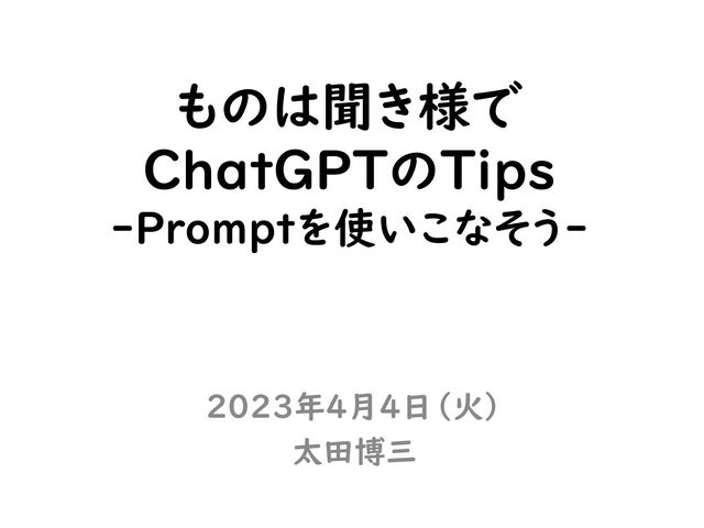 ものは聞き様で ChatGPTのTips -Promptを使いこなそう- 2023年4月4日(火) 太田博三