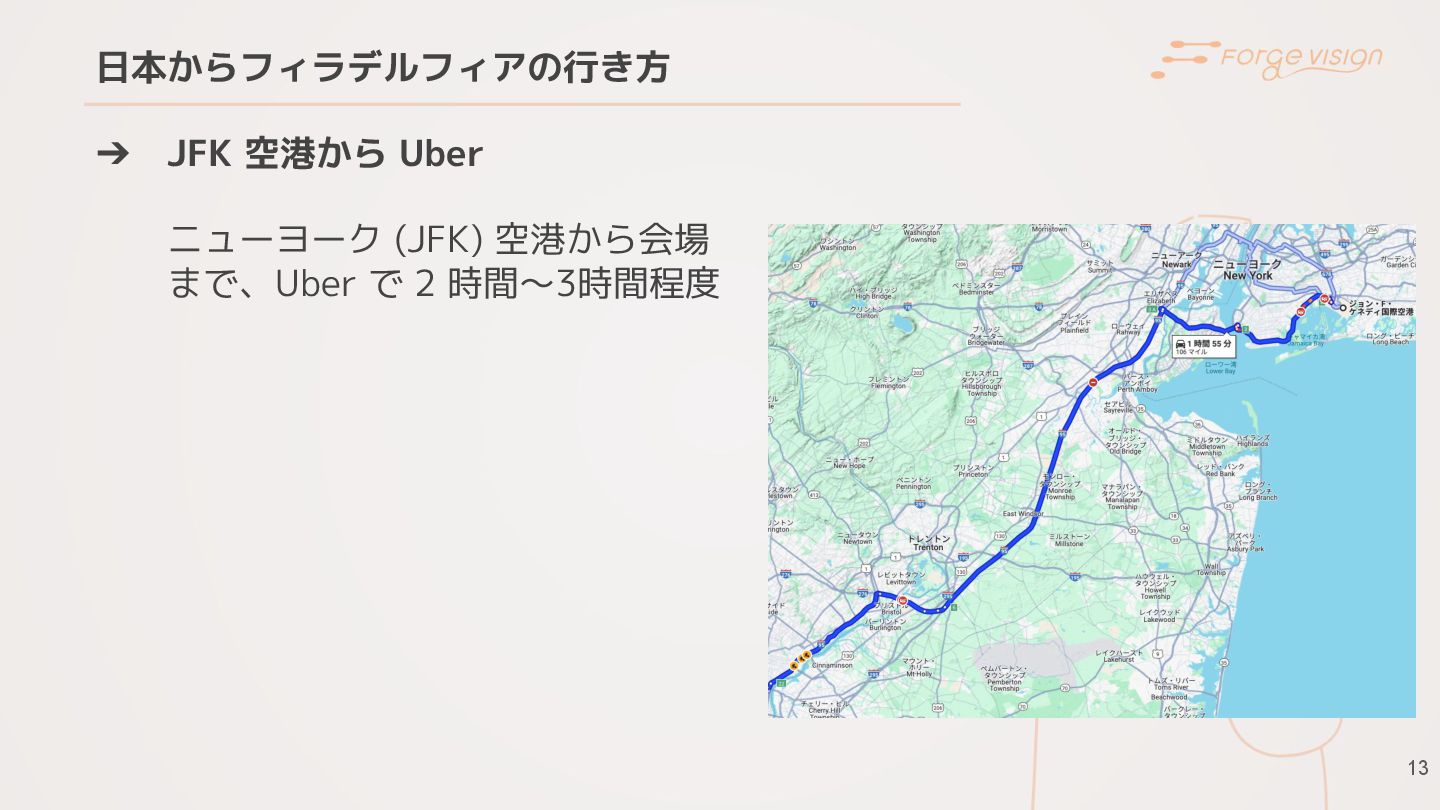 日本からフィラデルフィアの行き方 ➔ JFK 空港から Uber ニューヨーク (JFK) 空港から会場 まで、Uber で