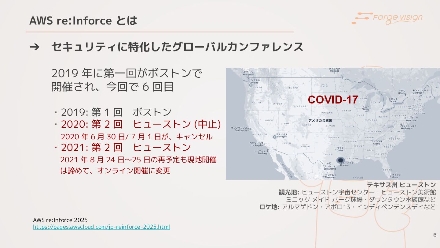 AWS re:Inforce 2025 https://pages.awscloud.com/jp-reinforce-2025.html AWS re:Inforce とは ➔ 第 6