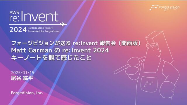ForgeVision Inc. participated in AWS re:Invent 2024 and subsequently held a debriefing session in Shin-Osaka, Osaka 15th Jan, 2025. I spoke at the event.