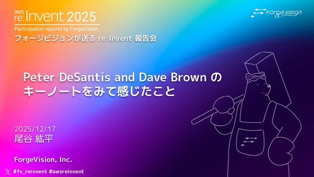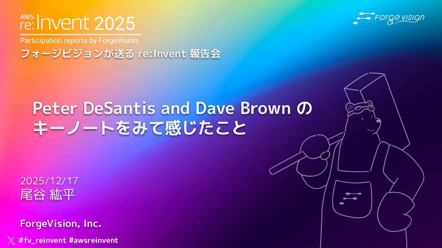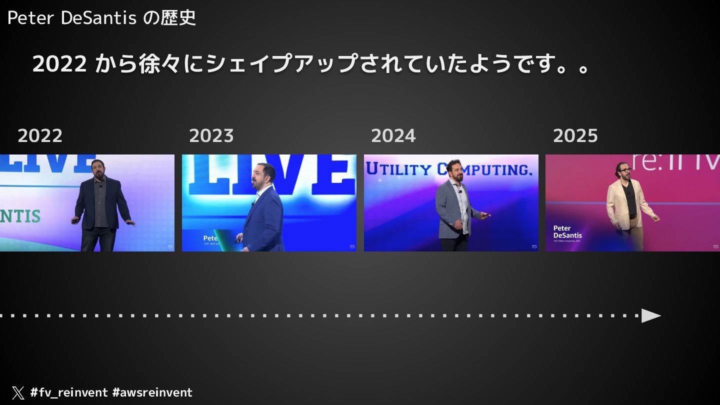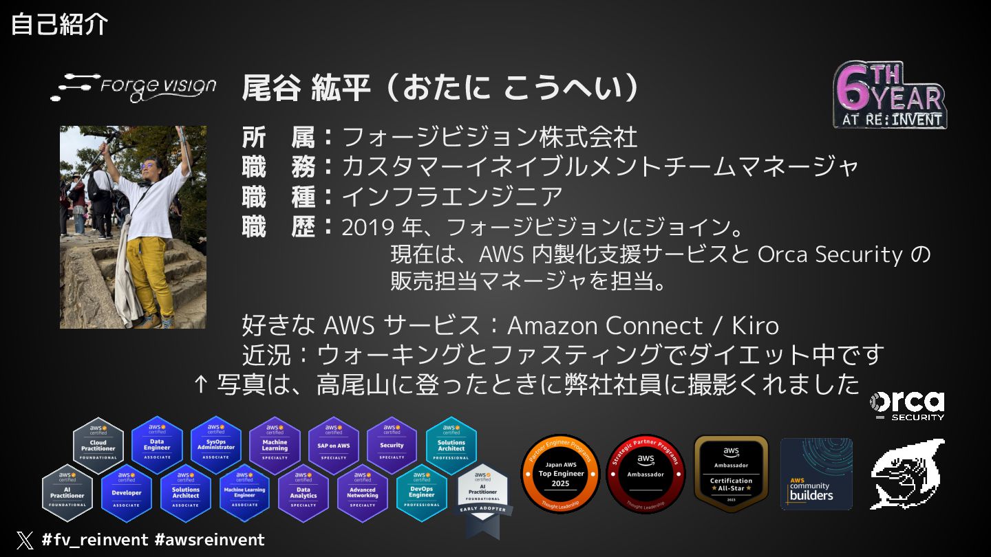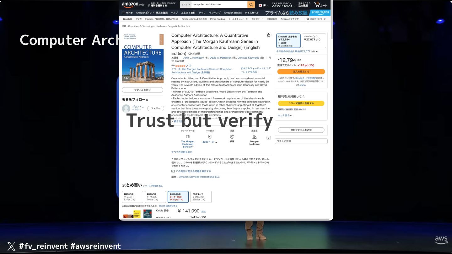 2: M6g, R6g, C6g (2019) • Graviton 3: C7g (2021) • Graviton 3e: HPC7g (2022) • Graviton 4: R8g (2023) • Graviton 5: M9g インスタンス (2025) • AWS の Arm CPU。高速で、電力効率が高い • コア数が倍 (192 コア) に、L3 キャッシュが 5.3 倍に • 性能あたりの電力効率も向上 • Airbnb / ATLASSIAN / honeycomb.io / SAP で先行利用開始 #fv_reinvent #awsreinvent