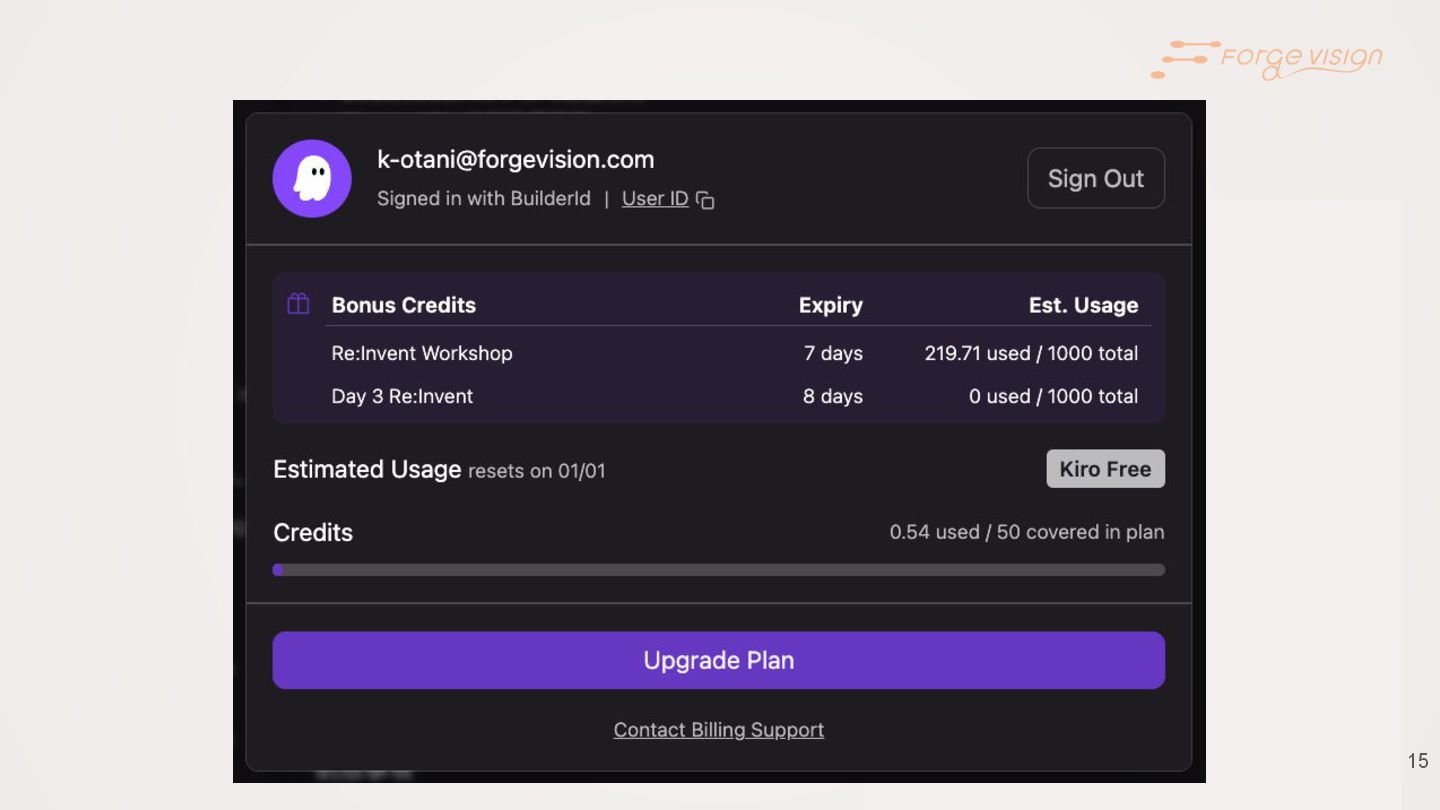 Kiro のクレジットを使い切る!