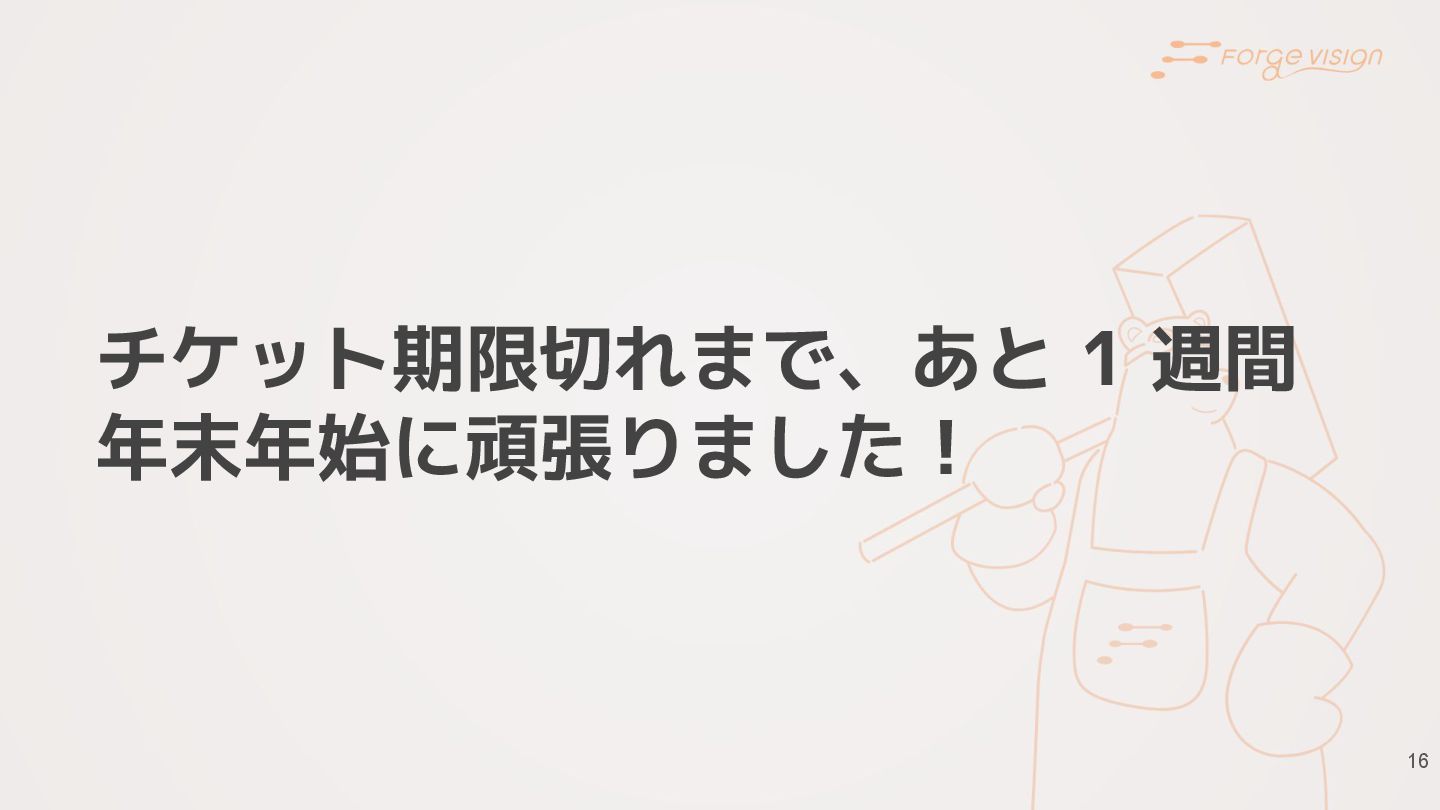 16 チケット期限切れまで、あと 1 週間 年末年始に頑張りました!