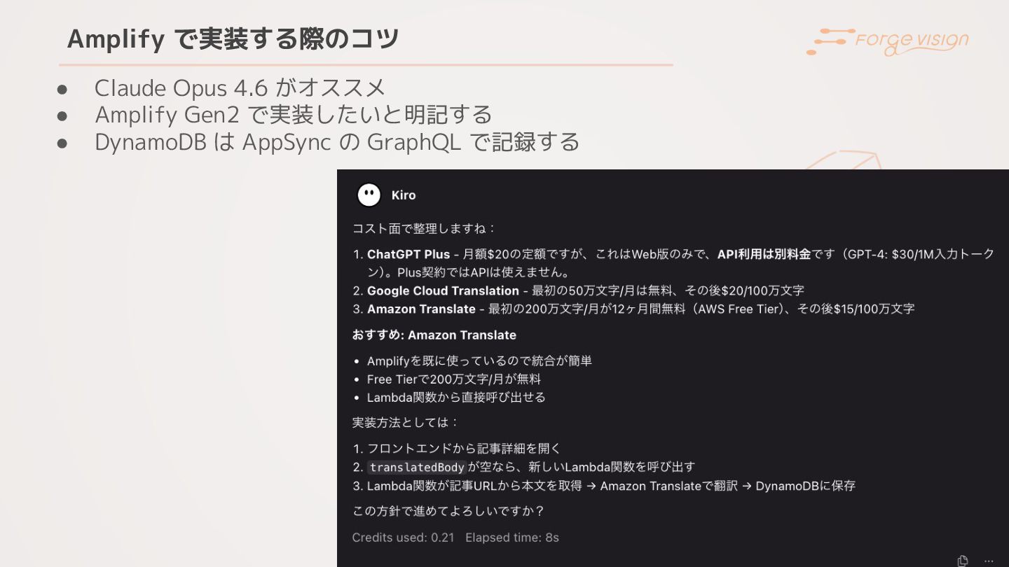 Amplify で実装する際のコツ 38 • Claude Opus 4.6 がオススメ • Amplify