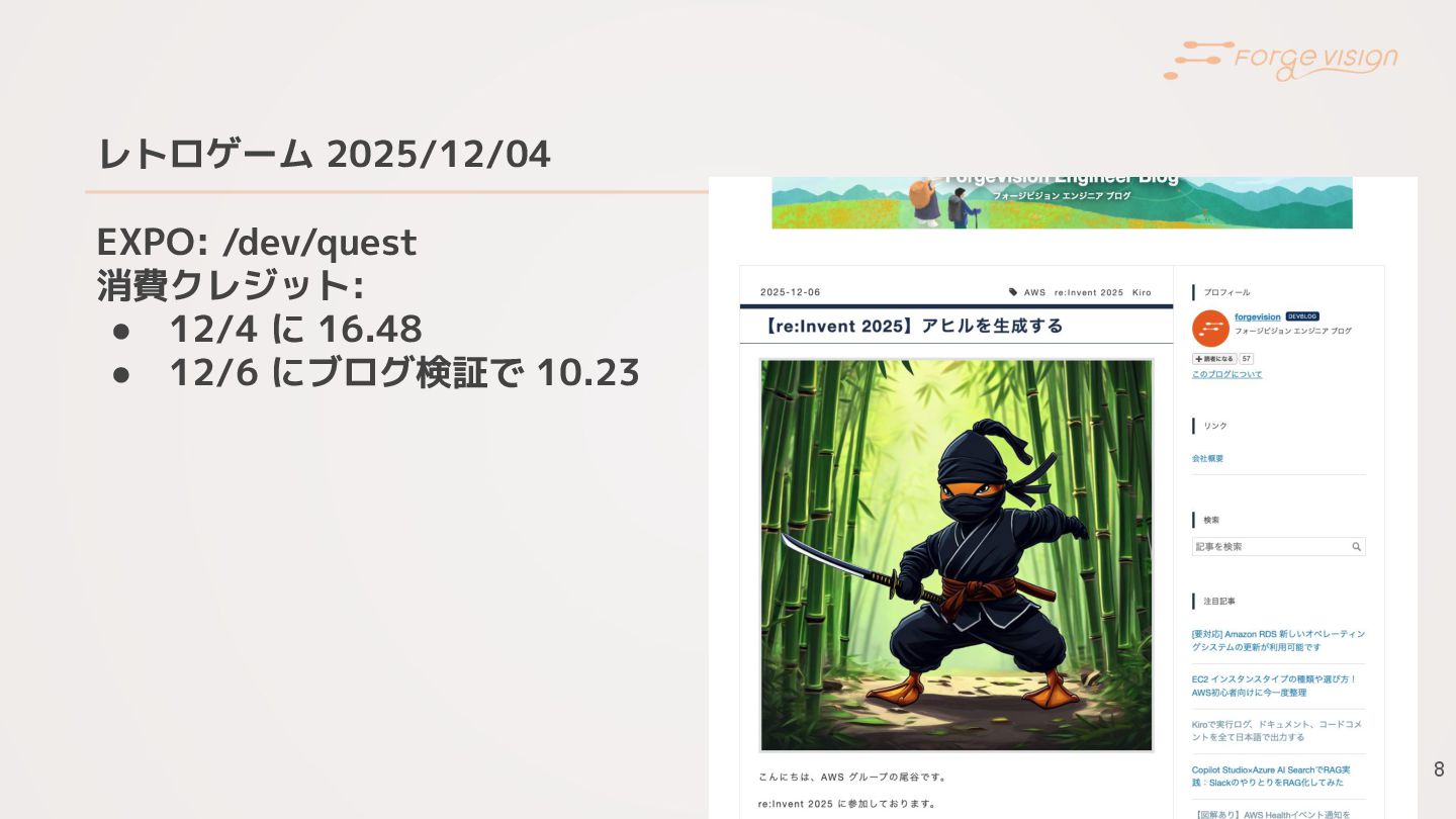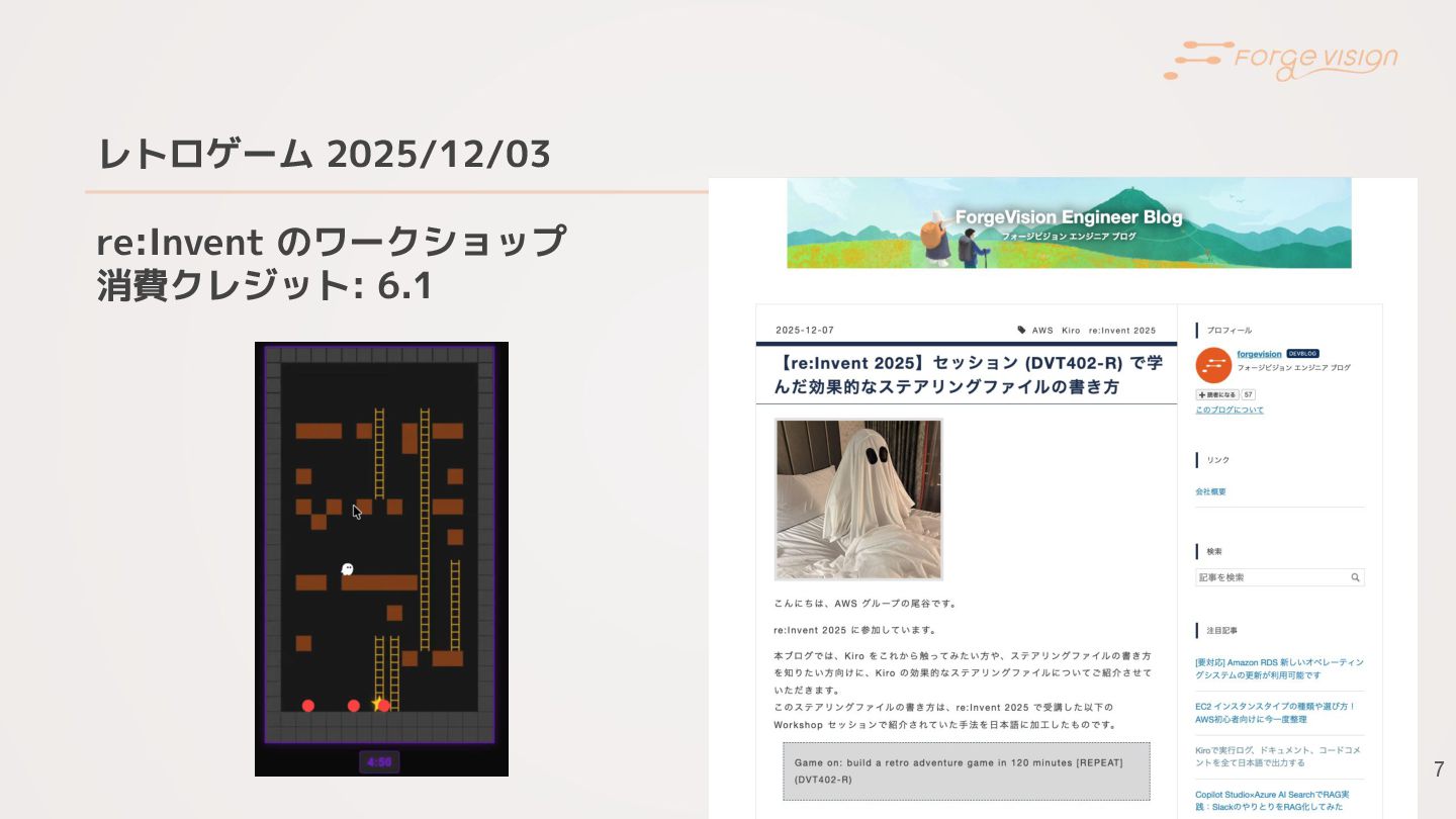 7 レトロゲーム 2025/12/03 re:Invent のワークショップ 消費クレジット: 6.1