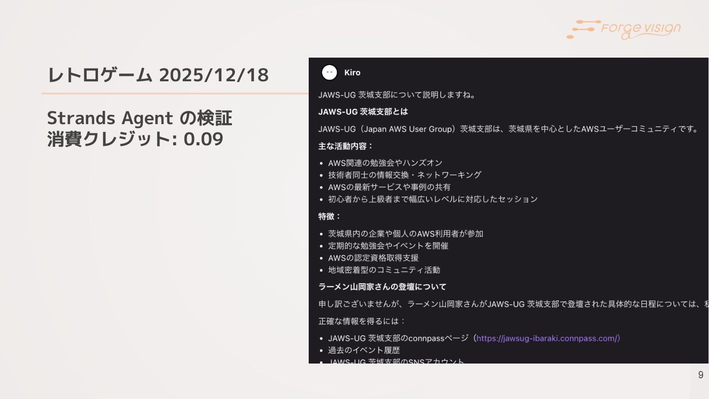 レトロゲーム 2025/12/18 Strands Agent の検証 消費クレジット: 0.09 9