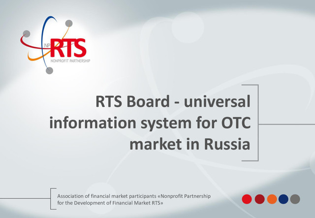 – universal information system for OTC market in Russia Moscow 06 TOP-10 RTS Board quoted stocks’ dividends paid in 2016 (RUB per share) TOP-10 Russian exchange traded stocks’ dividends paid in 2016 (RUB per share) Source: issuers’ information Source: BCS Import substitution strategy in all major areas of Russian economy (industry, agriculture, IT, pharmaceuticals, etc.) The largest since the beginning of 1990-s program of state defense orders financing Underestimated market value of Russian companies due to general decrease of Russian stock market A wide range of new securities of Russian issuers that are not traded in an active market 7302 3540 2130 2034 1718 1594 1065 1000 1000 900 JSC "Mihailovsky GOK", cs JSC "ILYUSHIN Aviation Complex", cs JSC "VOMZ", ps JSC "Valenta Pharmaceuticals", cs PJSC "ARPE "TEMP-AVIA", ps JSC "UdmurtNeft", cs JSC "VOMZ", cs JSC "Orelstroy", cs JSC "Mostostroy-11", cs JSC "Gornozavodskcement", cs 4435 1734 823 690 458 348 230 222 180 179 PJSC "ALROSA-Nyurba", cs PJSC "Saratov Oil Refinery" , ps PJSC "Transneft", ps PJSC "Lenzoloto", ps PSC "VSMPO-Avisma" , cs PJSC "TransContainer", ps PJSC "Norilsk Nickel", cs PJSC "MGTS", ps / cs PJSC "Akron", cs PJSC "Magnit", cs ✓ ✓ ✓ ✓ 320 1200 37700 155400 254 846 29600 103200 0 20000 40000 60000 80000 100000 120000 140000 160000 180000 Russian stock exchange RTS Board PJSC NPJSC & JSC The number of issuers on the stock exchange and OTC stock market (2011, June 2015) 2011 2015 Exponential (2015)