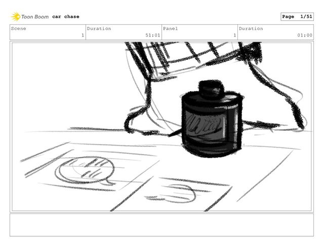 Scene 1 Duration 51:01 Panel 13 Duration 01:00 car chase