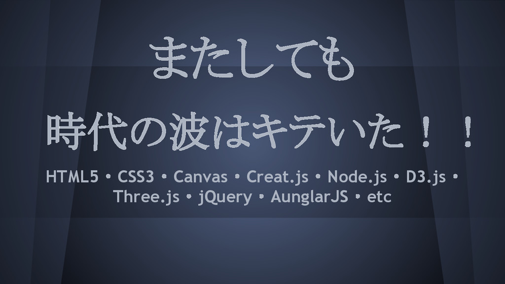 D3.js ・ Three.js ・ jQuery ・ AunglarJS ・ etc 時代の波はキテいた!! またしても