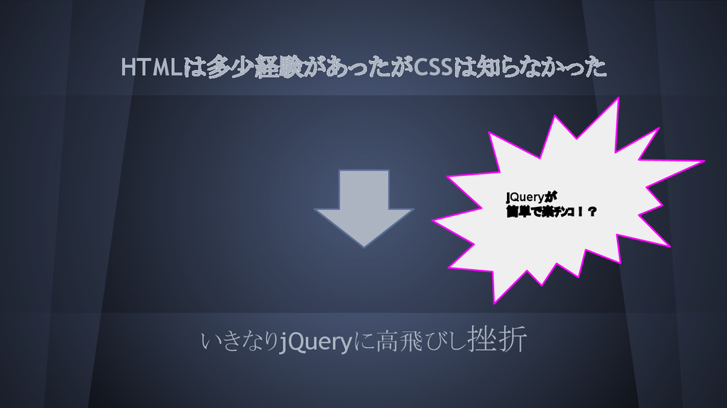 HTMLは多少経験があったがCSSは知らなかった いきなりjQueryに高飛びし挫折 jQueryが 簡単で楽チンコ!?