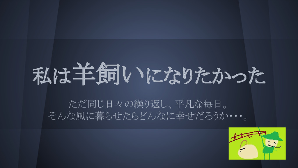 私は羊飼いになりたかった ただ同じ日々の繰り返し、平凡な毎日。 そんな風に暮らせたらどんなに幸せだろうか・・・。