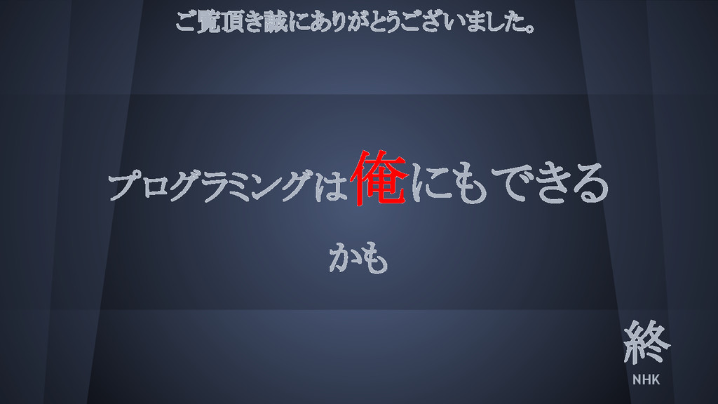 プログラミングは俺にもできる かも 終 NHK ご覧頂き誠にありがとうございました。