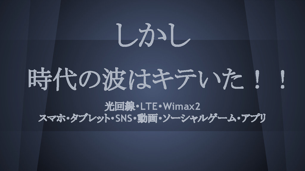 光回線・LTE・Wimax2 スマホ・タブレット・SNS・動画・ソーシャルゲーム・アプリ 時代の波はキテいた!! しかし