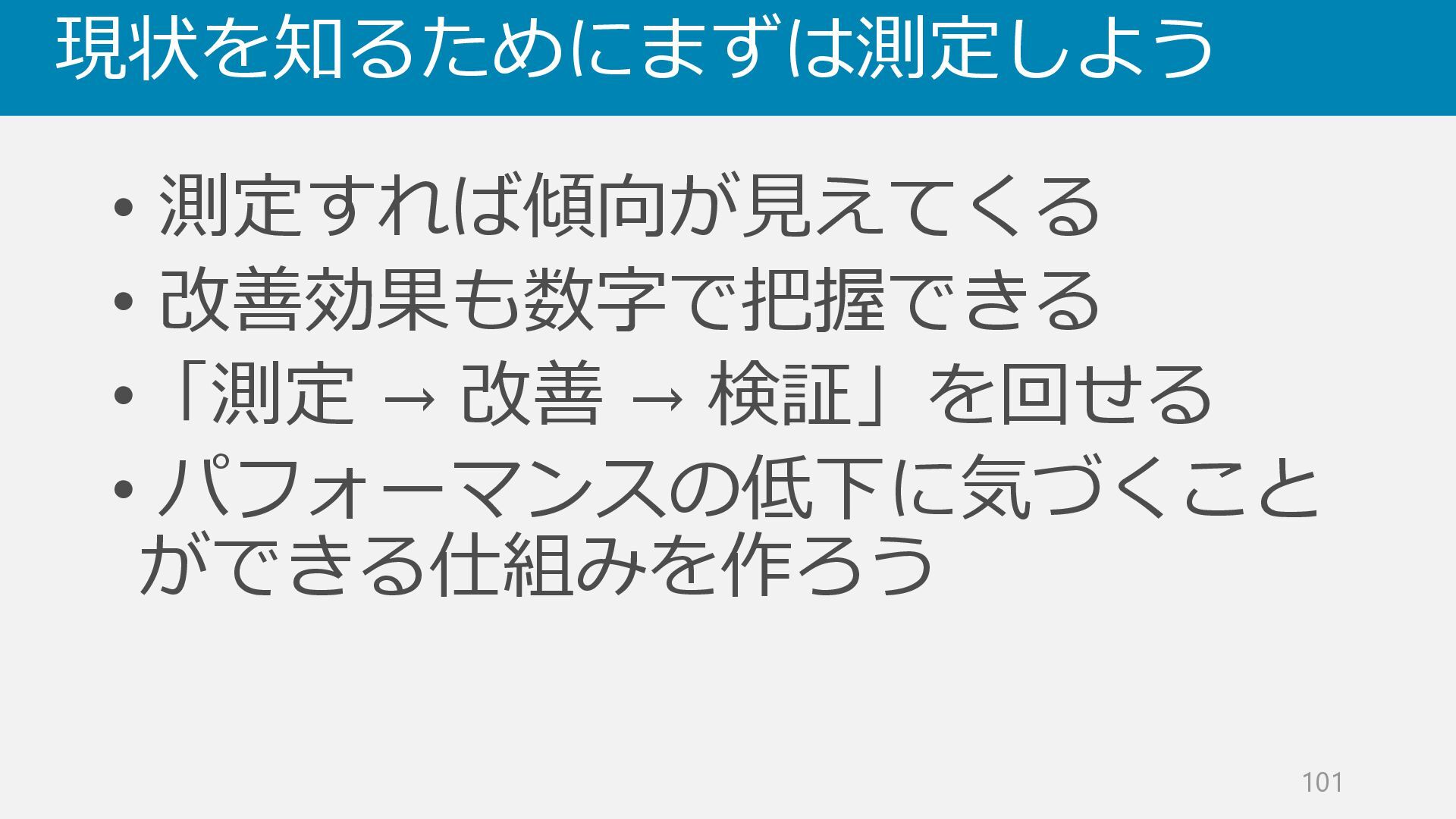 パフォーマンス改善の第一歩は、現在の状態を正しく測ること。つまり、「定量化」です。