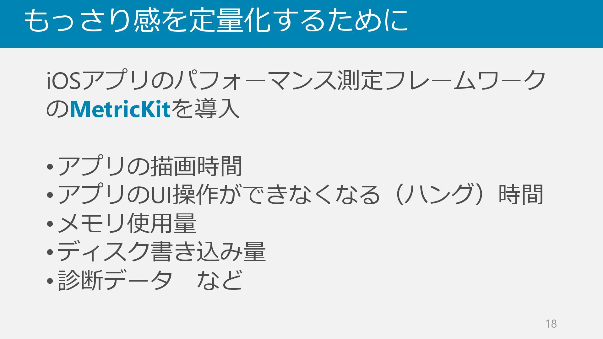 そんな見えない「もっさり」の正体を明らかにし、改善につなげるためにMetricKitを活用しました。