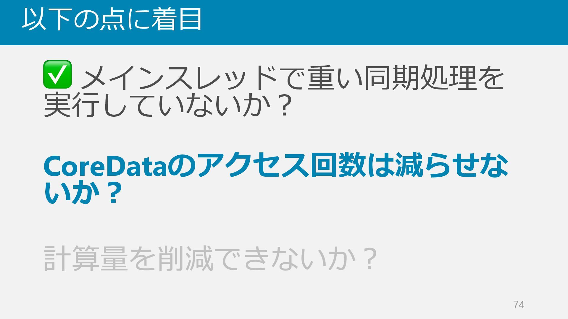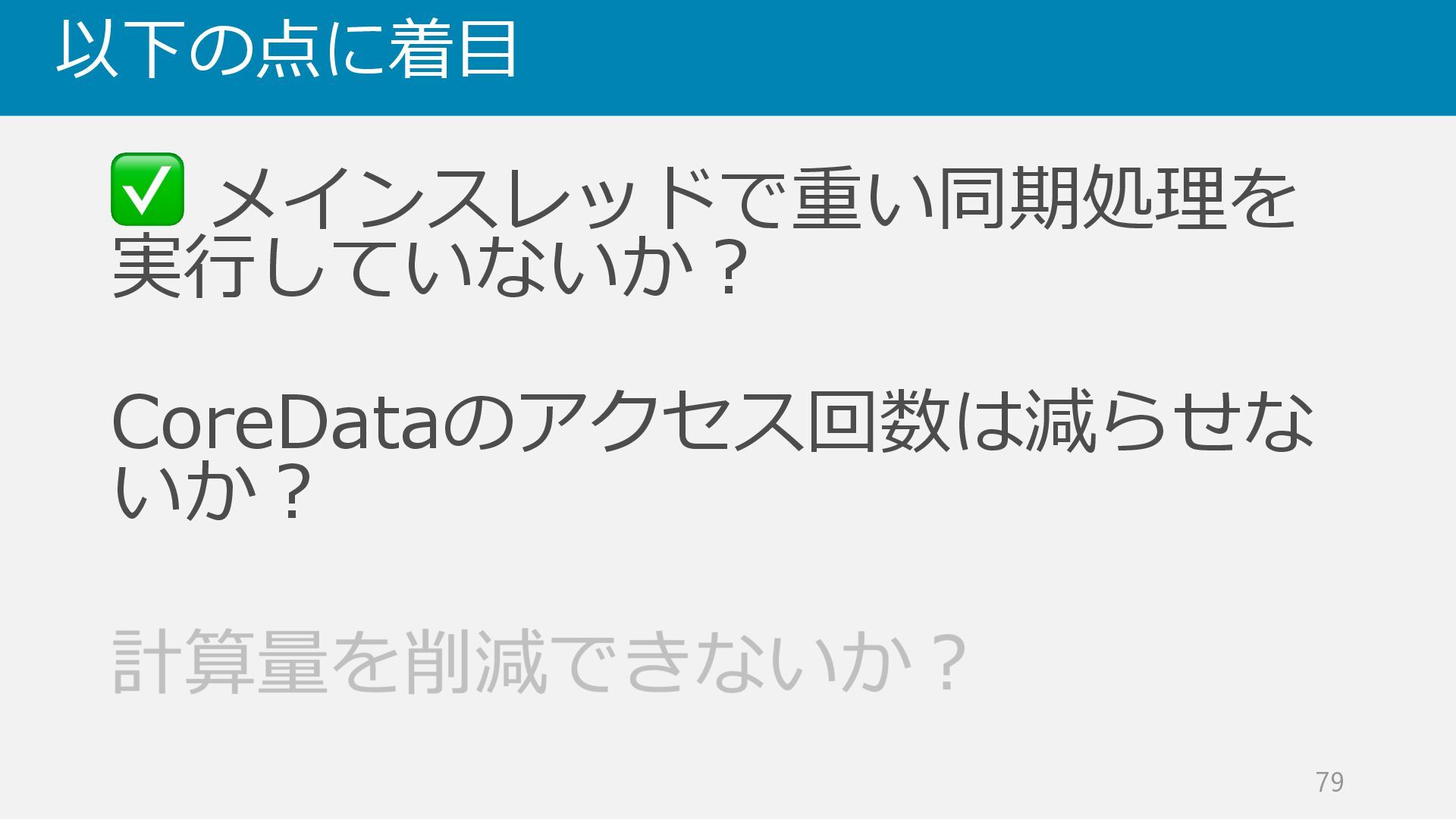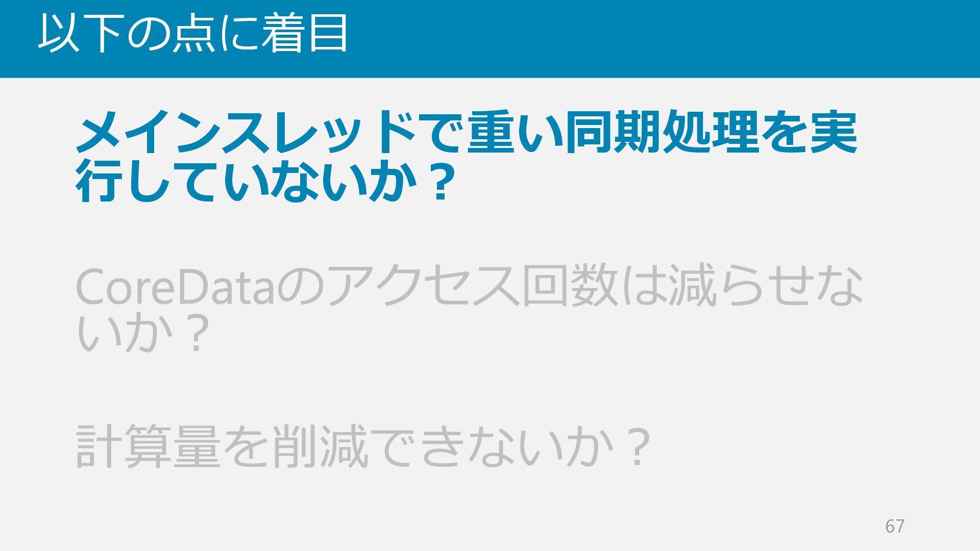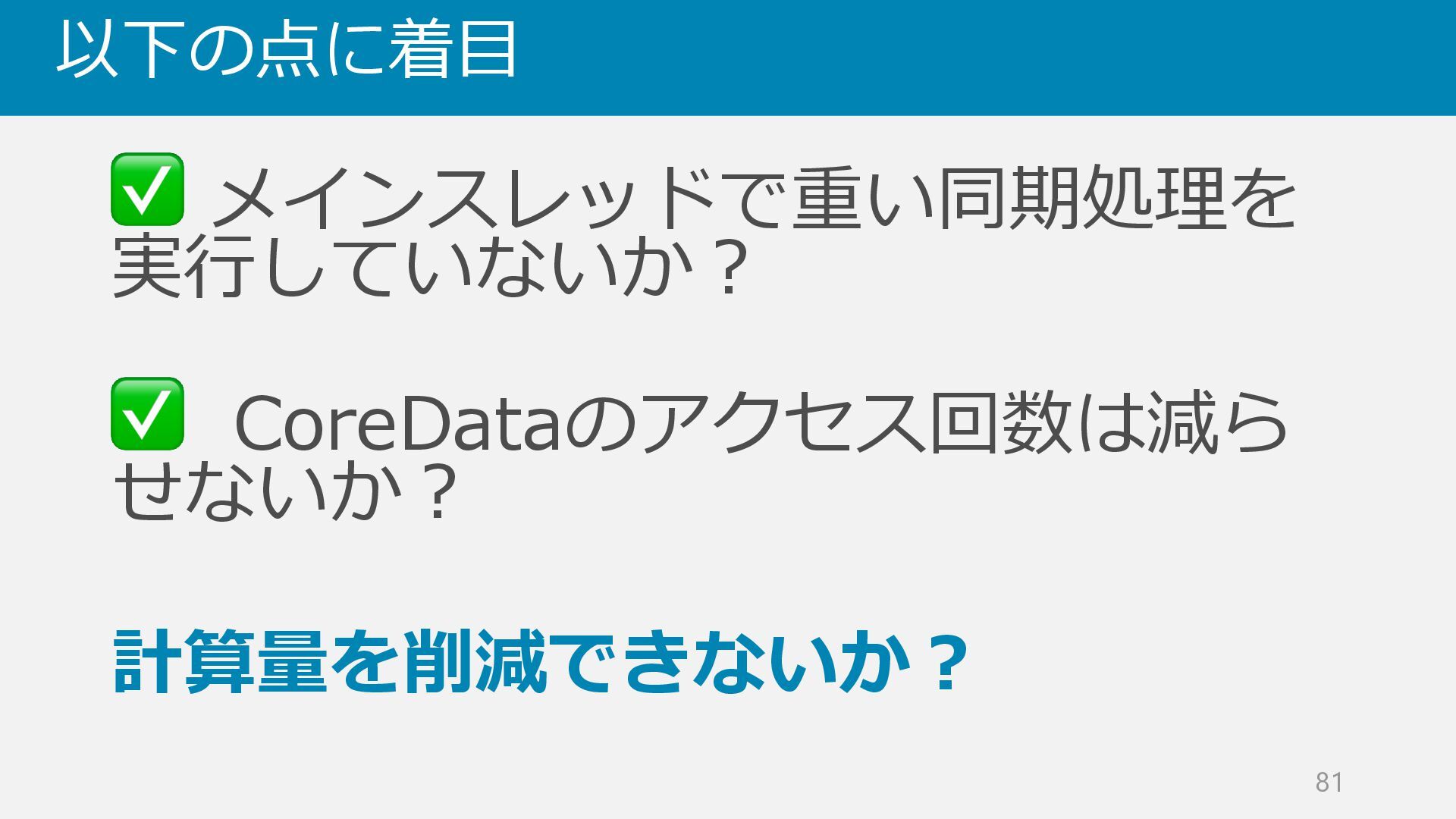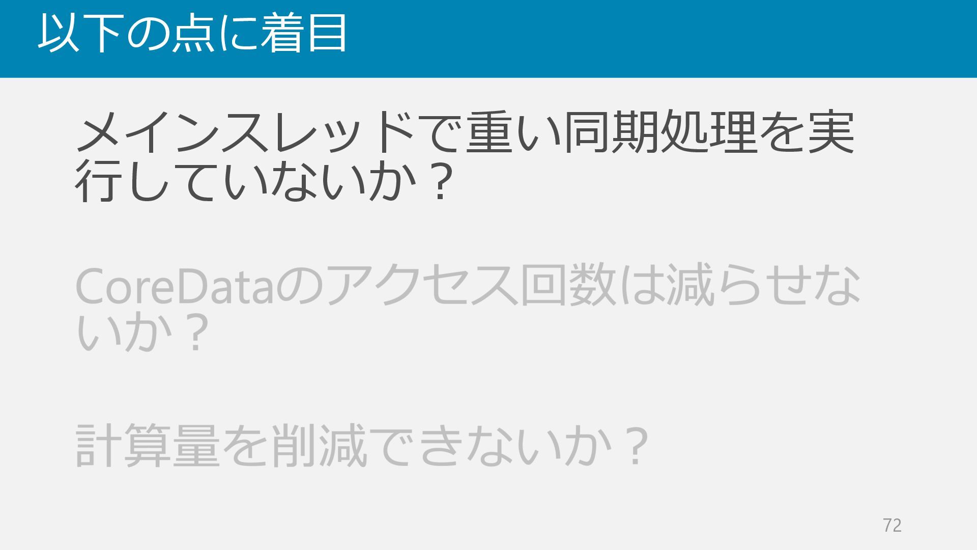 - メトリクスの分析から見えたボトルネックとなっていたCoreDataの処理