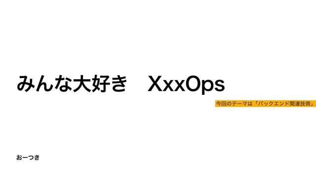 ͓ʔ͖ͭ ΈΜͳେ͖ɹ9YY0QT ࠓճͷςʔϚʮόοΫΤϯυؔ࿈ٕज़ʯ