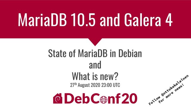 This presentation covers what new features landed in MariaDB 10.5 and also touches on how the long existing features have evolved to today, and naturally what is their state and best practices for Debian users. MariaDB has also built-in support for Galera master-master replication and Galera 4 has recently landed in Debian, so it will also be covered.