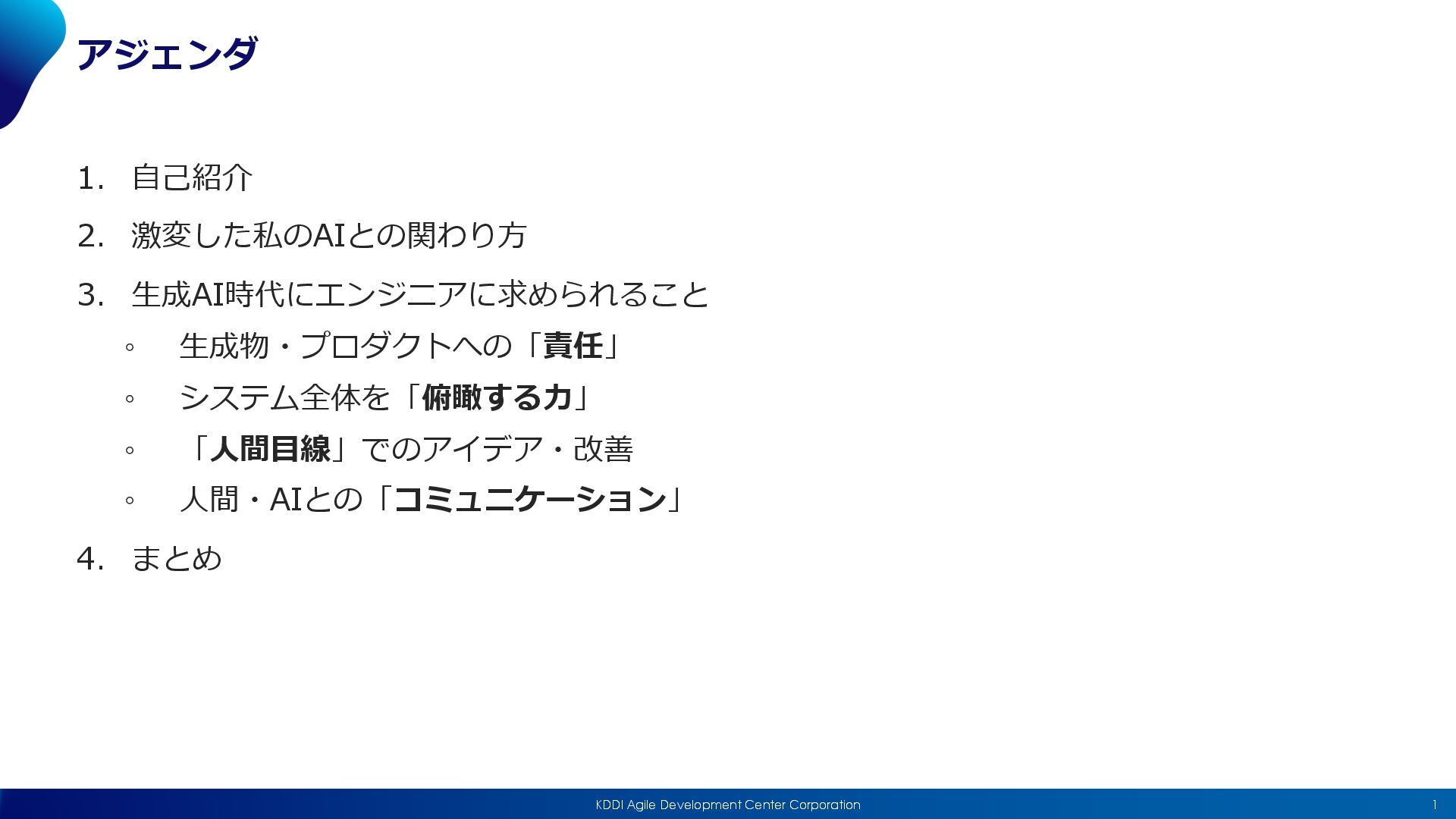 ◦ 論⽂和訳・英語の論⽂執筆 • ChatGPT ◦ 実装で躓いた時に質問 ◦ 当時も妥当そうなコードの出⼒が出来ていたが、結局⾃分で調べた ほうが速いことが多かった I've inherited my father's recklessness and have been losing out ever since I was a child. 親譲の無鉄砲で⼩供の時から 損ばかりしている。