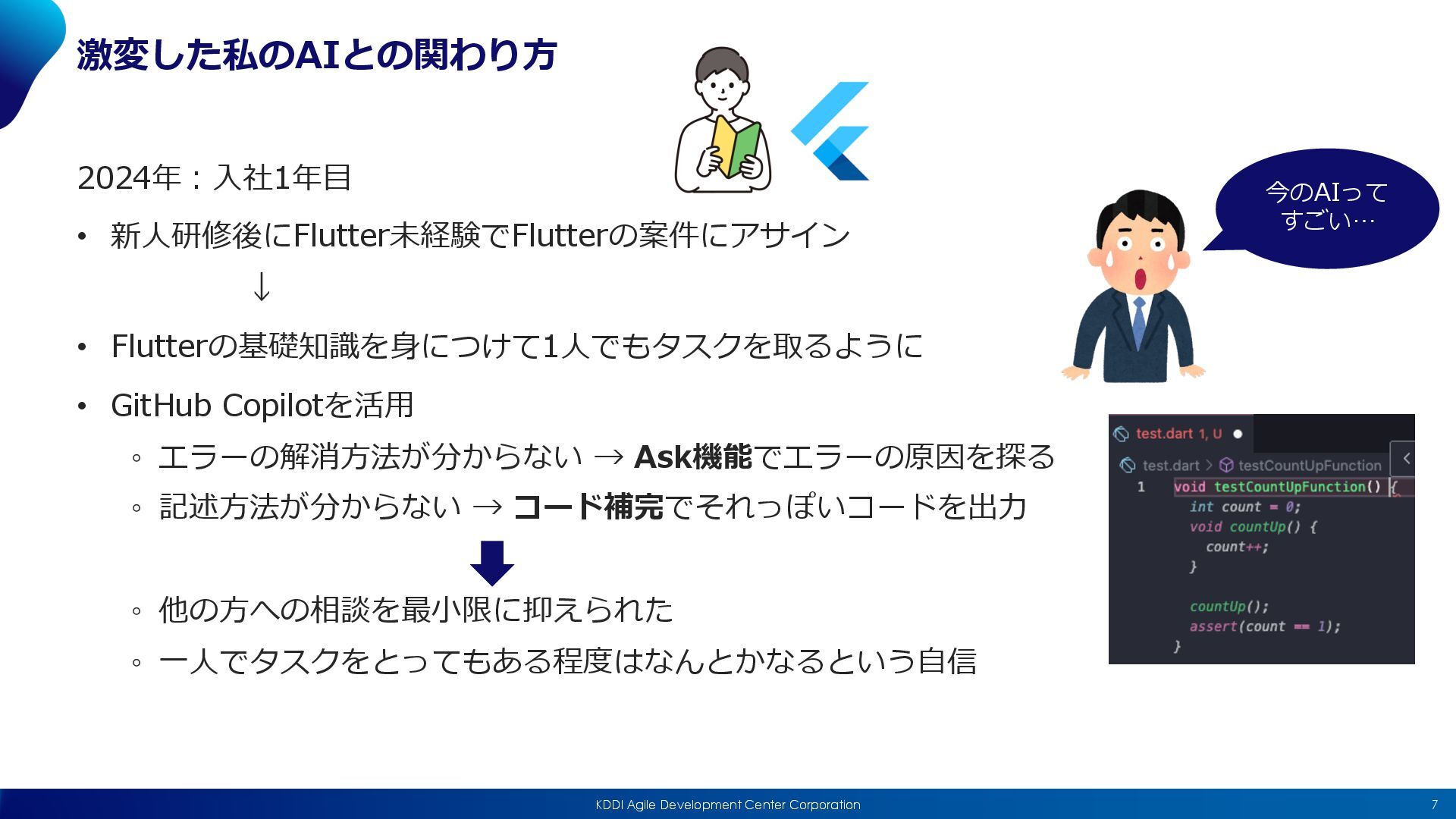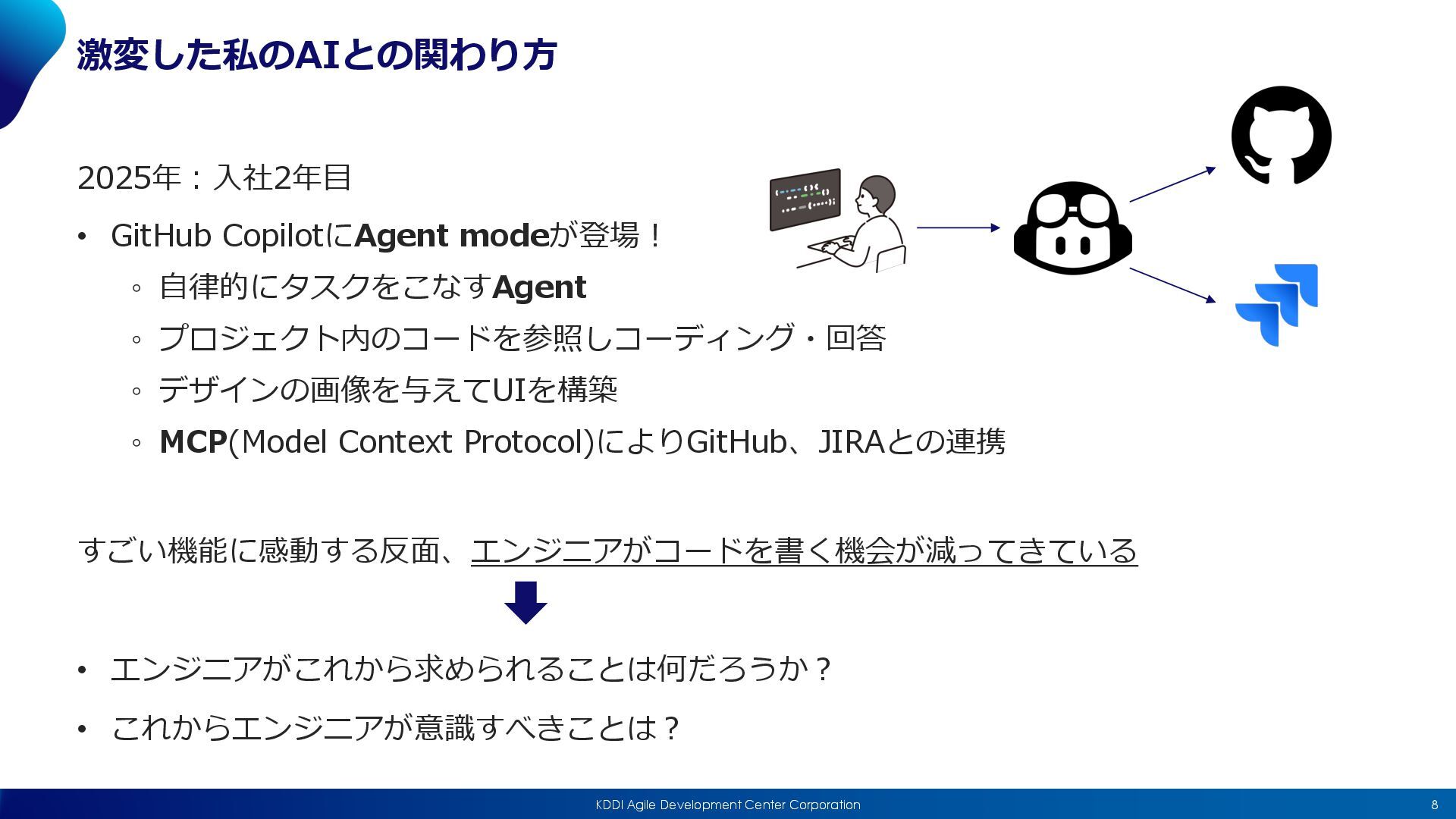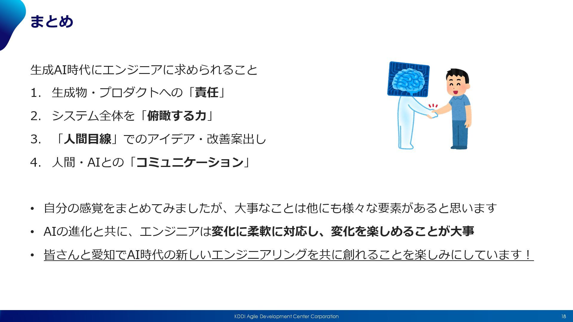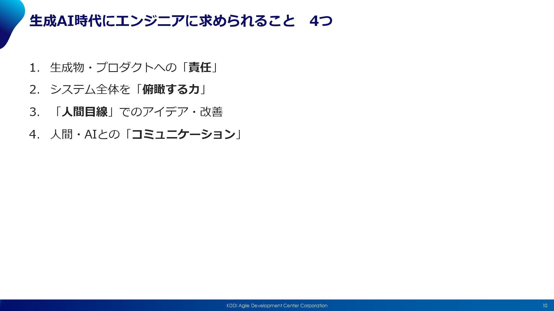 1. copilot-instructions.mdのような指⽰書に以下のように出⼒を指⽰ ◦ 「 AI が書いたコードには必ずコメントに made by copilot を付けること」 2. made by copilot がコード上に残っている時はcommitできないようにしている 3. PRのテンプレートに「☑copilot で⽣成したコードは⾃ら確認しているか」