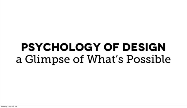 PSYCHOLOGY OF DESIGN a Glimpse of What’s Possible Monday, July