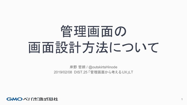 管理画面の 画面設計方法について 1 岸野 哲朗 / @outskirtsHinode 2019/02/08 DIST.25 「管理画面から考える