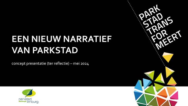 informatie en inspiratie uit deskresearch van diverse stukken (zoals de concept notities van december 2023) en boeiende gesprekken (zoals de diverse c0-creatie meetings). Daarvoor danken we alle participanten! In het Nieuw Narratief leggen we de focus op datgene wat Parkstad verder helpt. Daarmee is al hetgene dat niet gezegd is zeker niet onbelangrijk gemaakt. “Durven kiezen!” was een veelgehoorde aanmoediging in dit proces; we leggen daarom dit voor. Diverse woorden in het Nieuw Narratief prikkelen je fantasie en beleving. Deels duiden we dit in het definitieve stuk, mede o.b.v. de reacties in de reflectiefase. Deels houden we het bewust open; want de enige manier om succesvol de toekomst in te gaan, is door samen vorm & kleur te blijven geven aan ons Nieuw Narratief van Parkstad.
