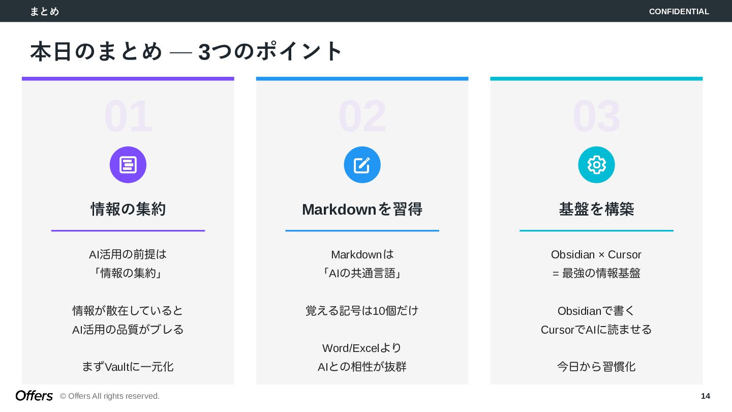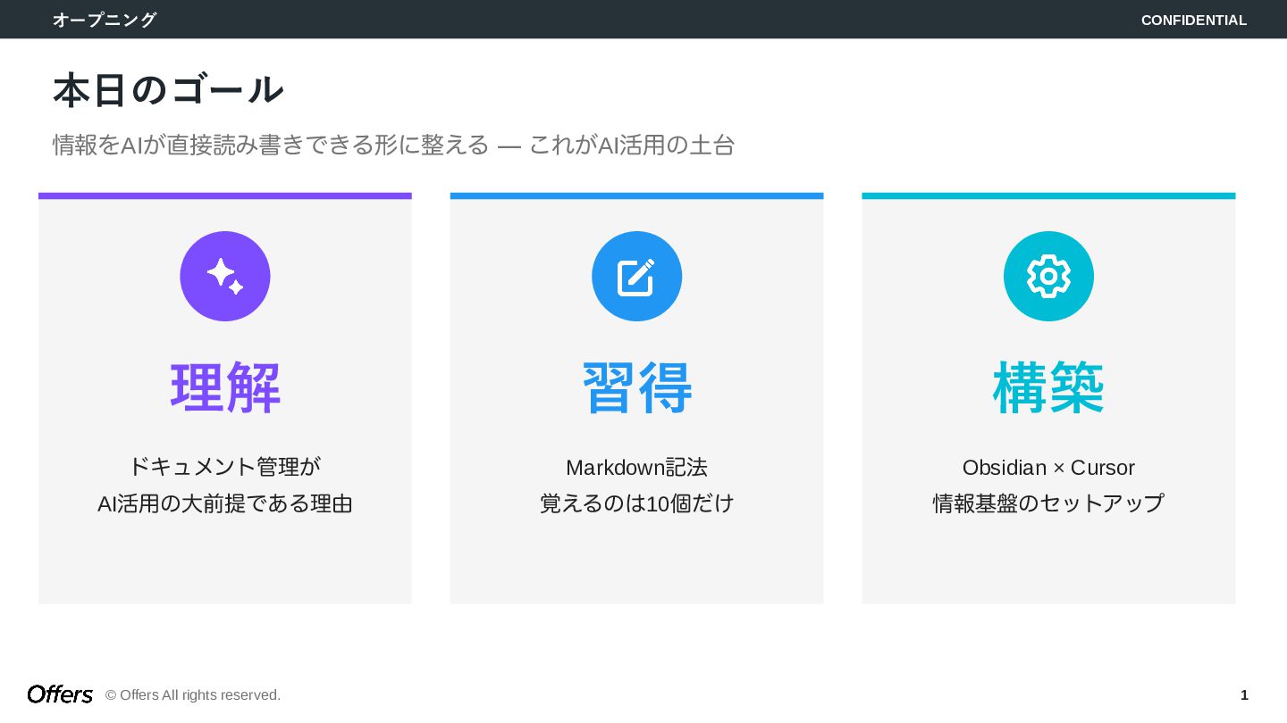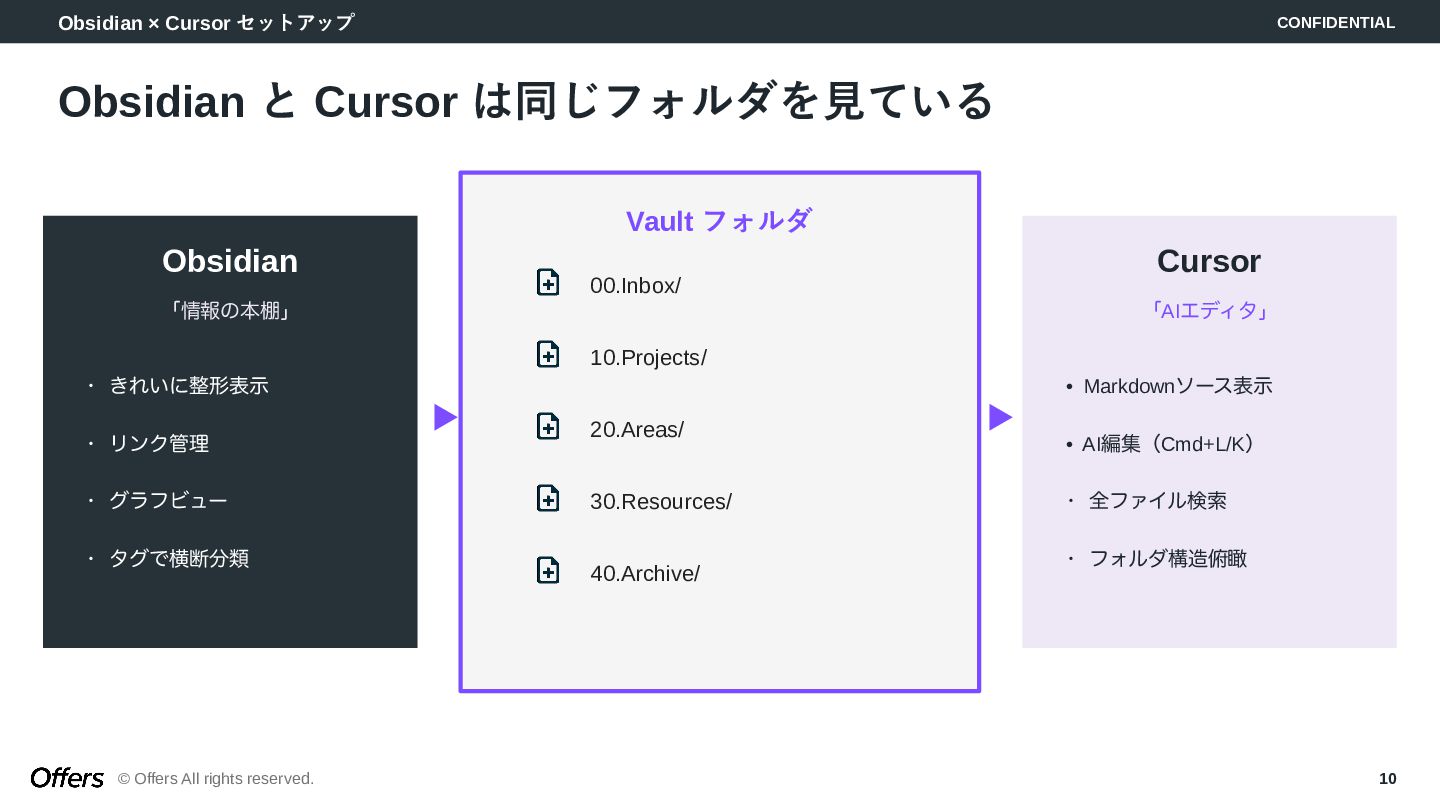 AI活用の最大のボトルネックは「情報の散在」。Obsidian × Cursorで、AIが直接参照・編集できるローカル情報基盤(Vault)を構築します。覚えるMarkdown記号はたった10個です。
